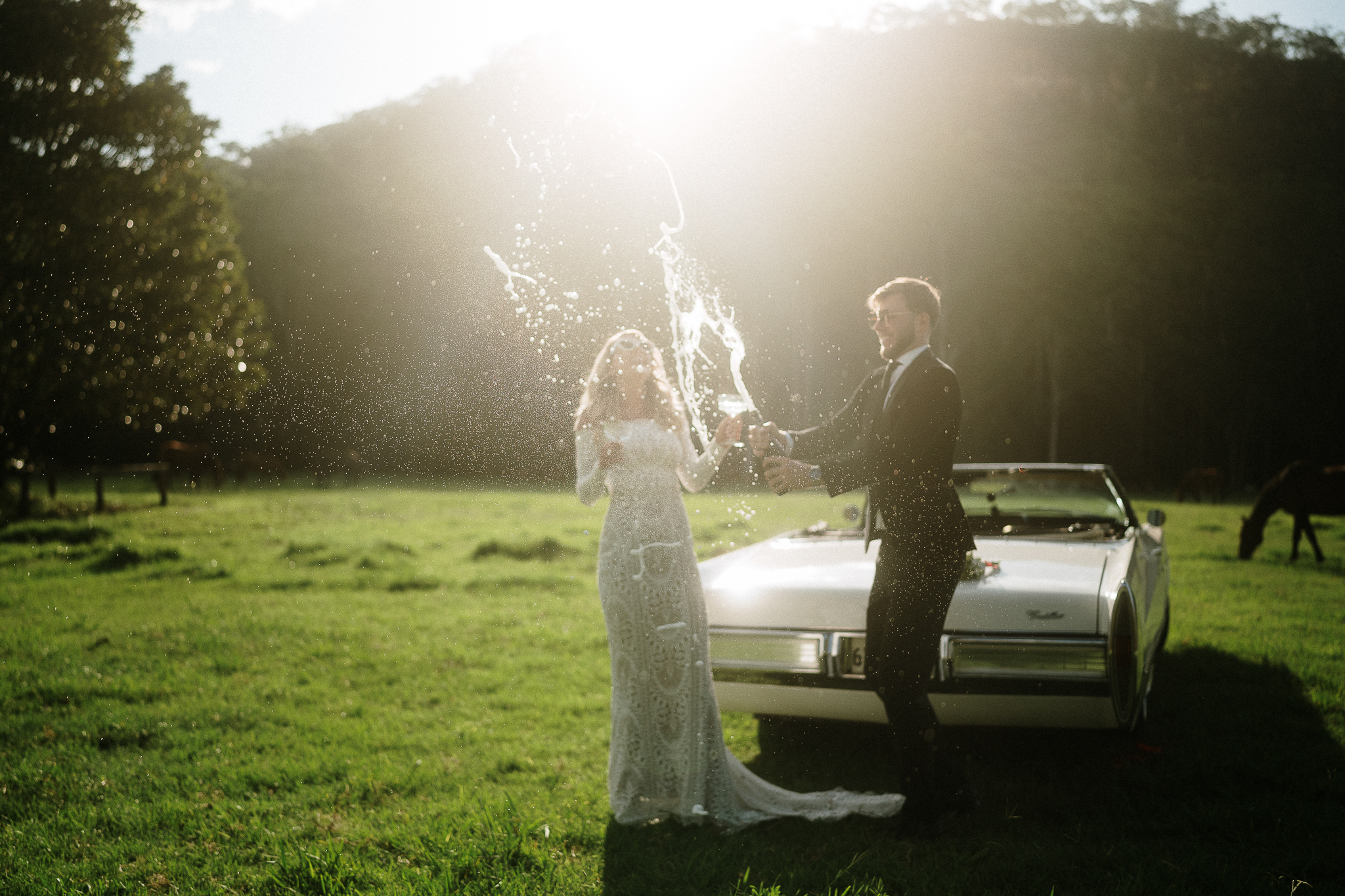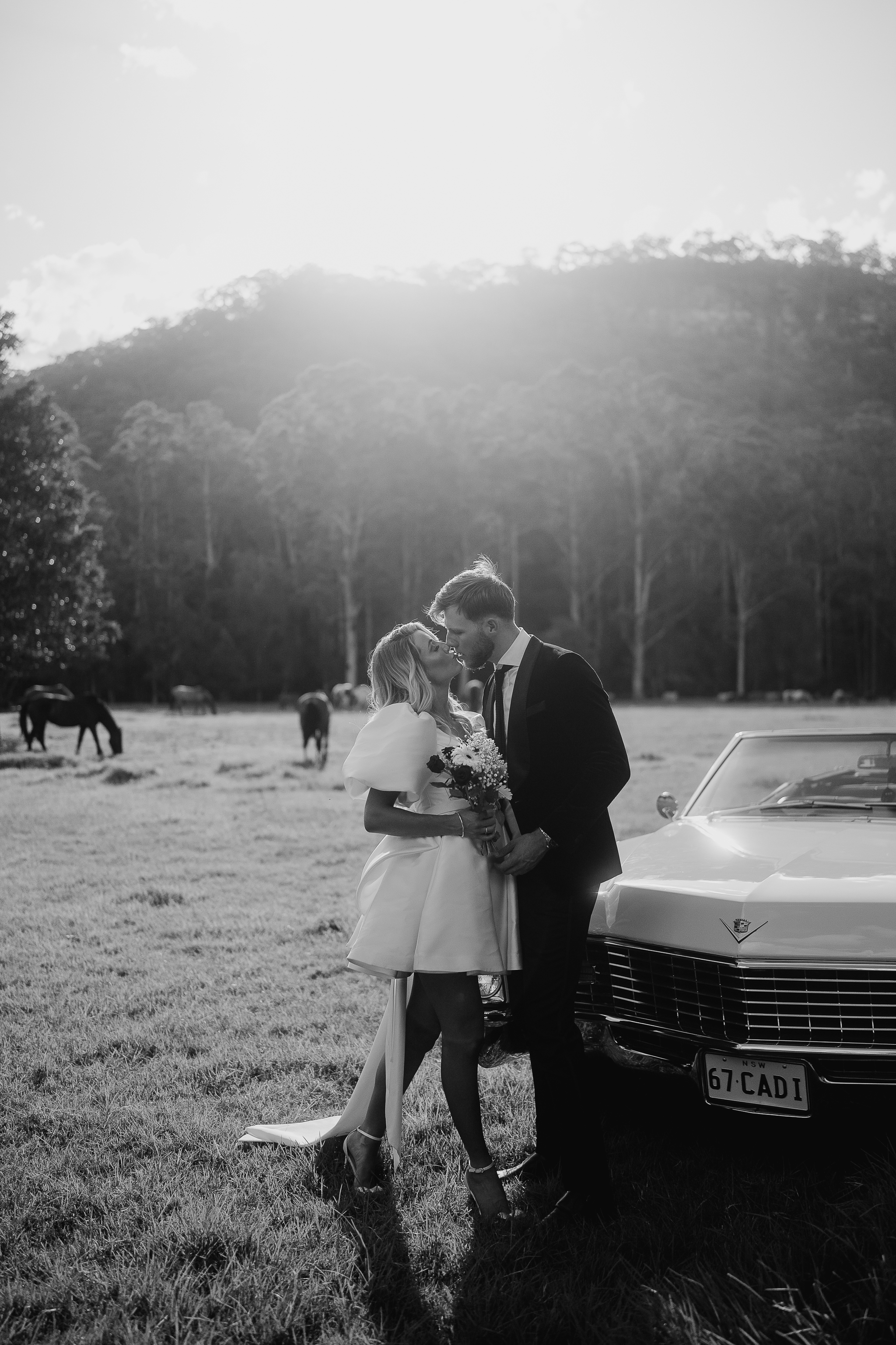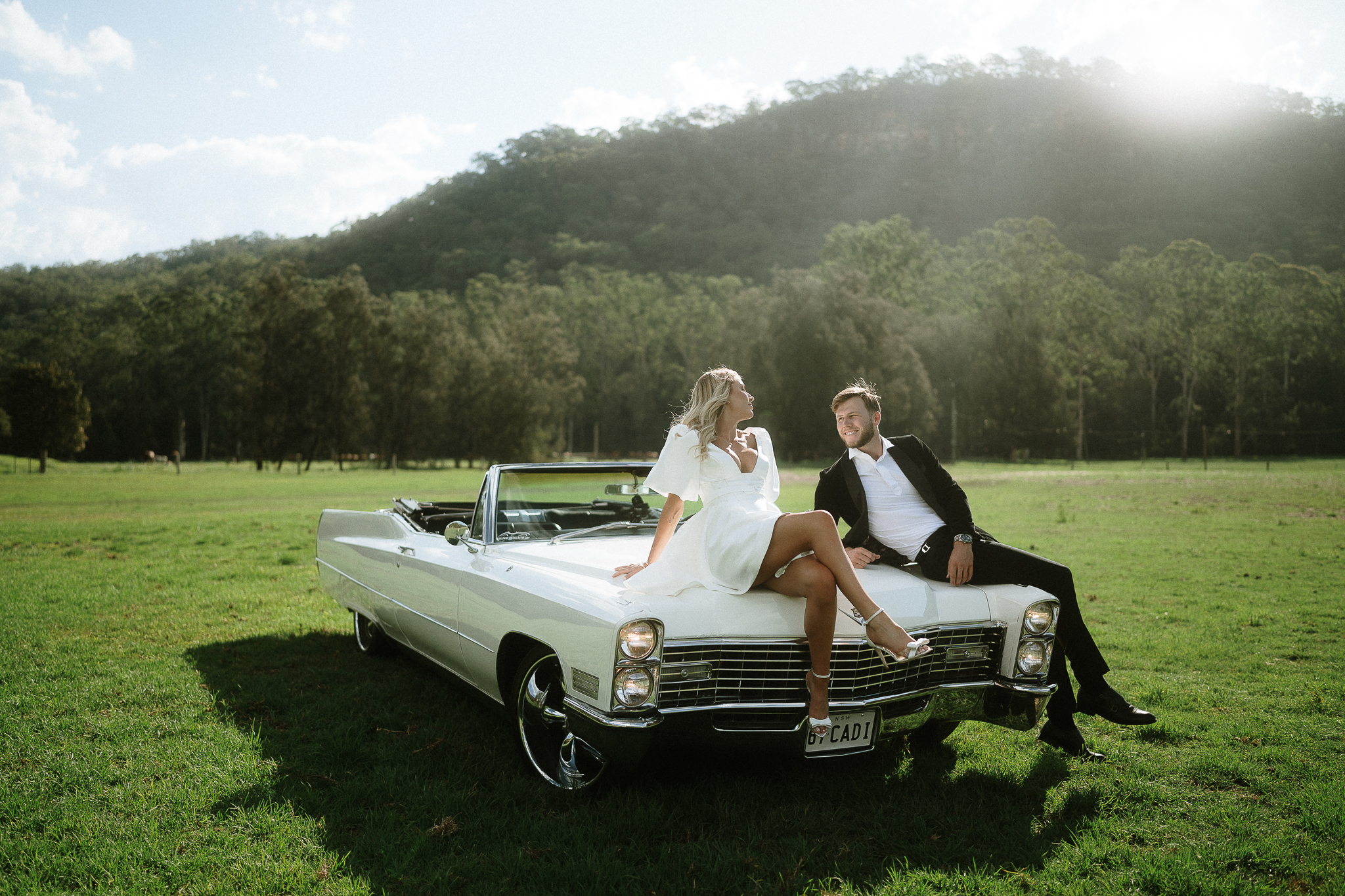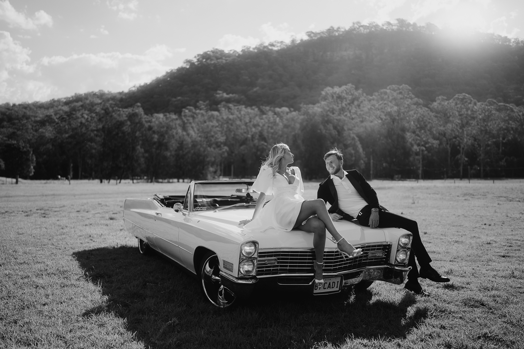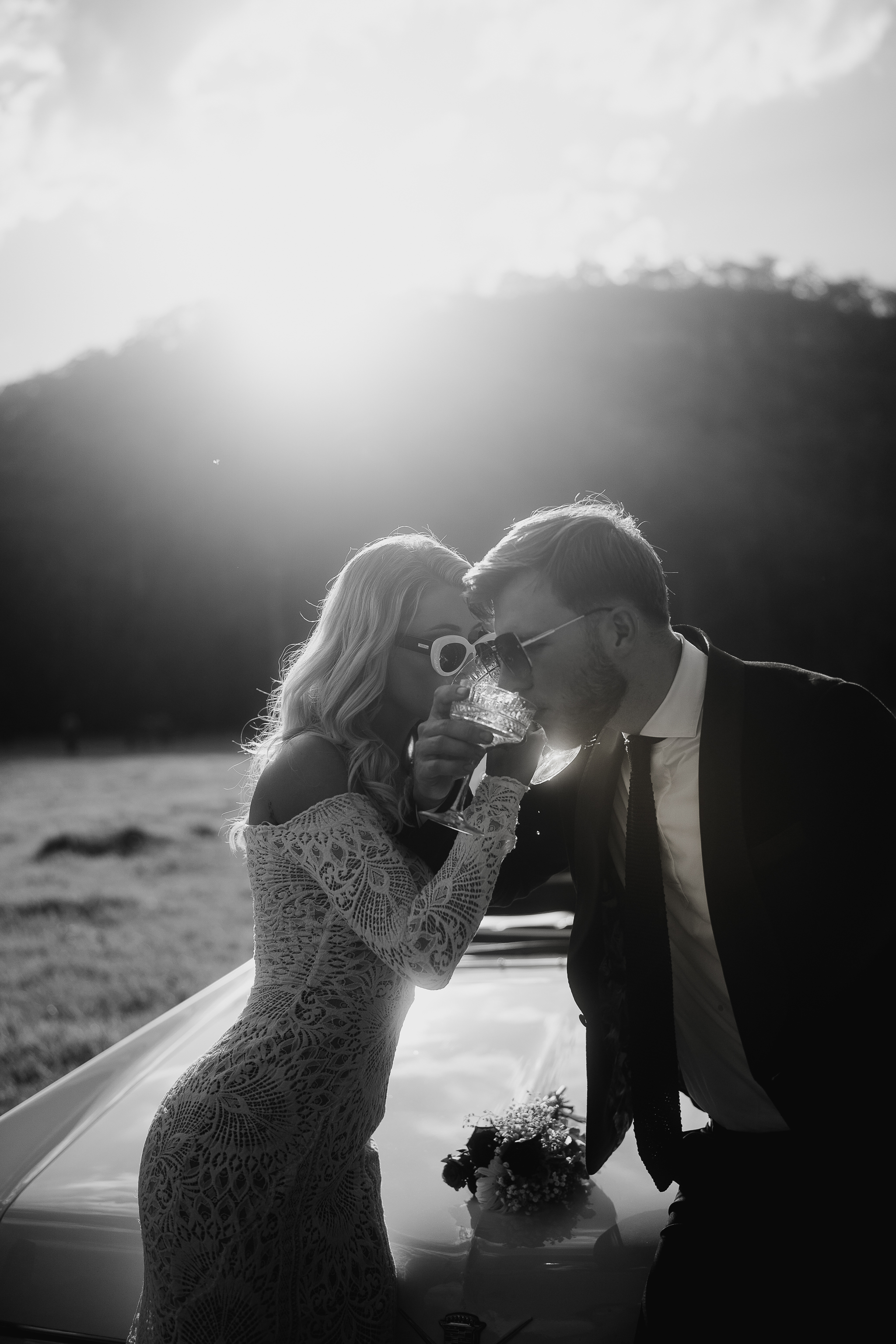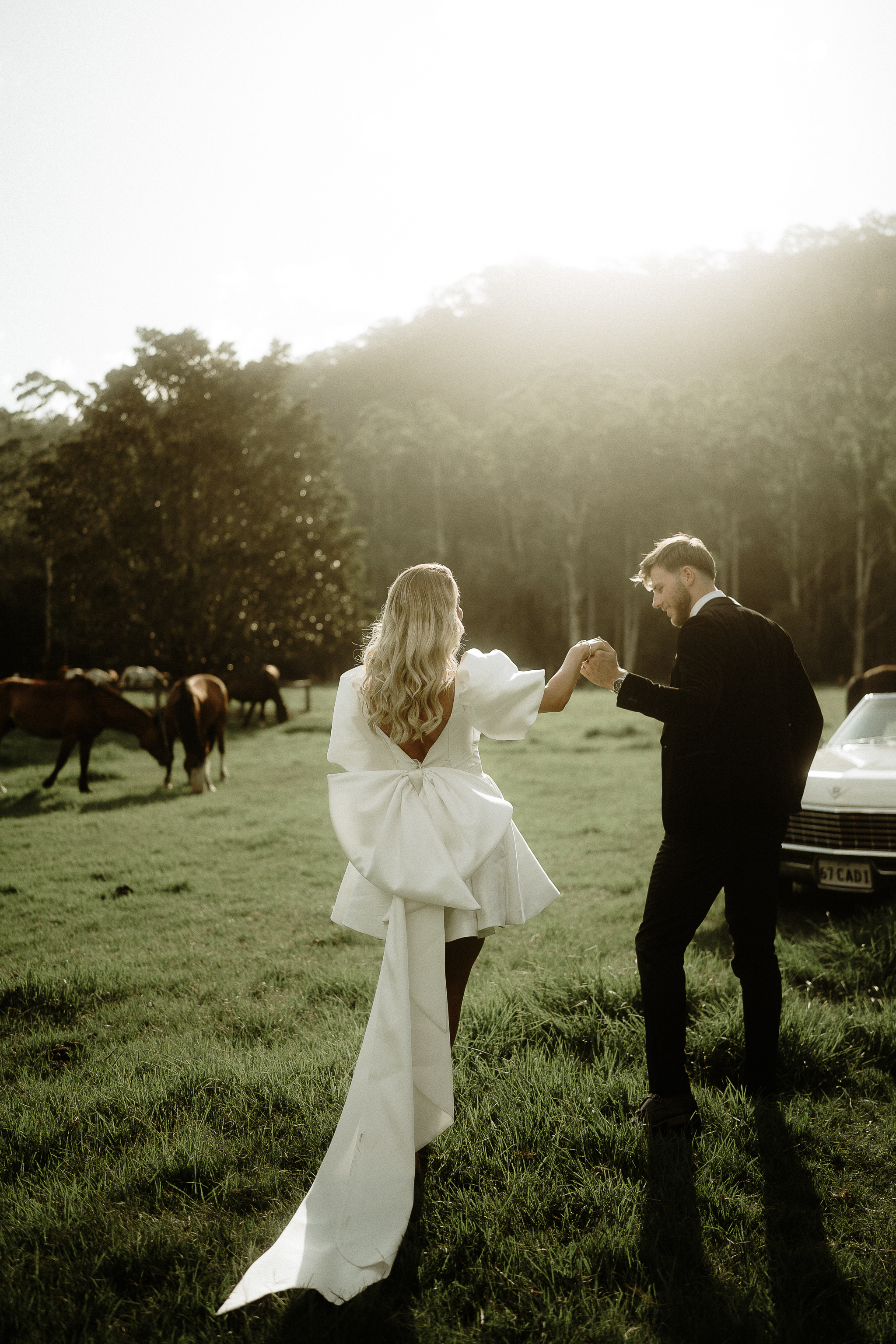 This beautiful photoshoot was done in the Glenworth valley weddings venue! If you are interested in shooting with horses and a beautiful landscape near Sydney, this is the place to be! All the things you see in this photoshoot, the car, dresses, suits, shoes, cake, champagne tower and the beautiful couple have all helped this shoot to achieve this beautiful look! I will post them all below as I highly recommend using these vendors! Car: @caddychicevents/ Bow dress: @kwhbridal/ Lace dresses: @grace_loves_lace/ Suits: @thdr_co/ Bridal shoes: @harloau/ Cake: @_sammiecakes