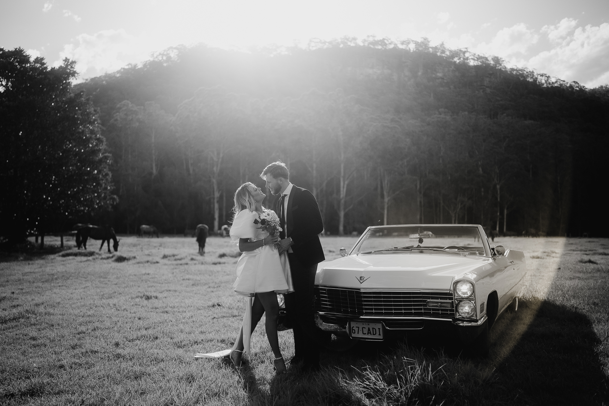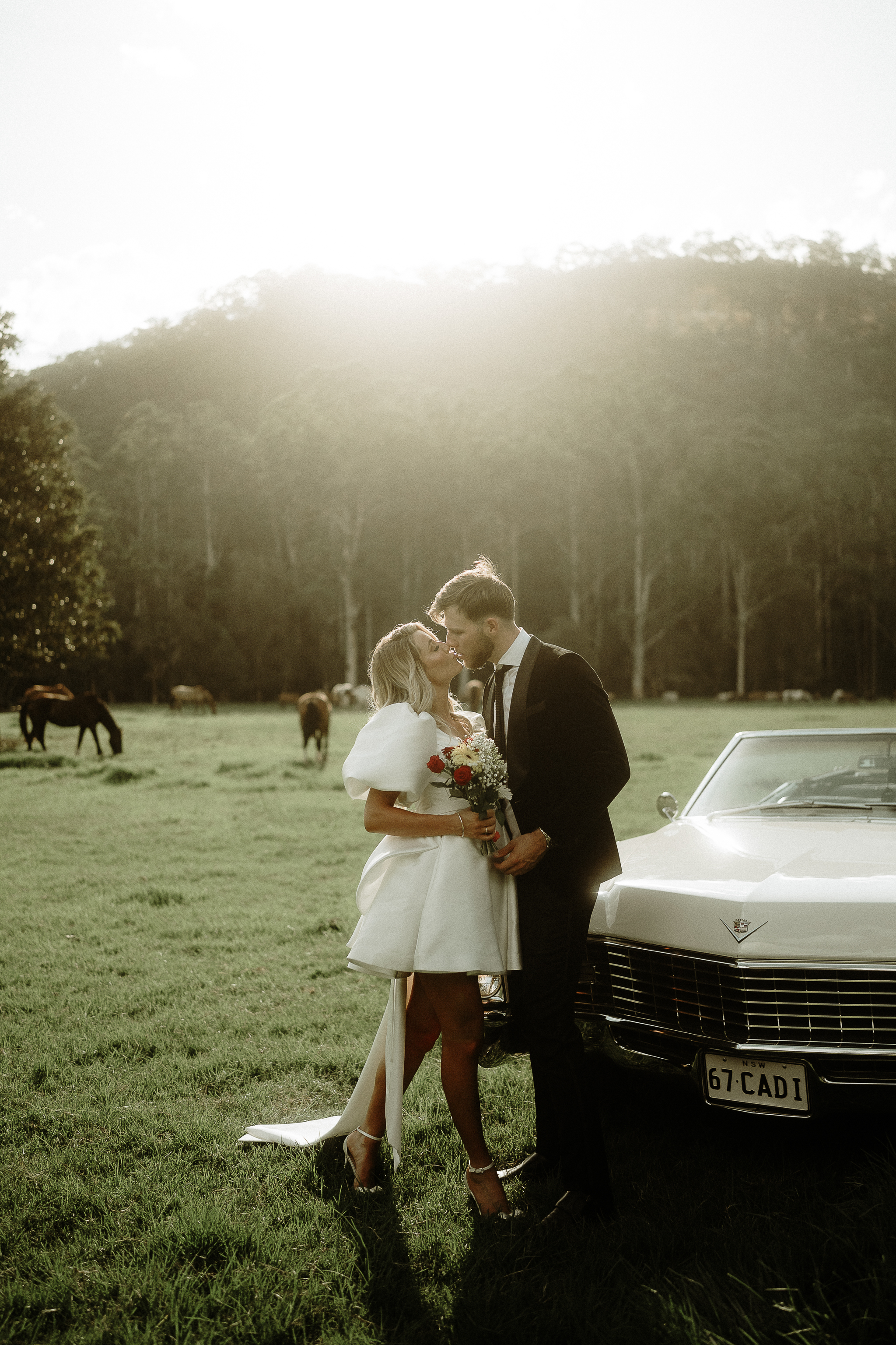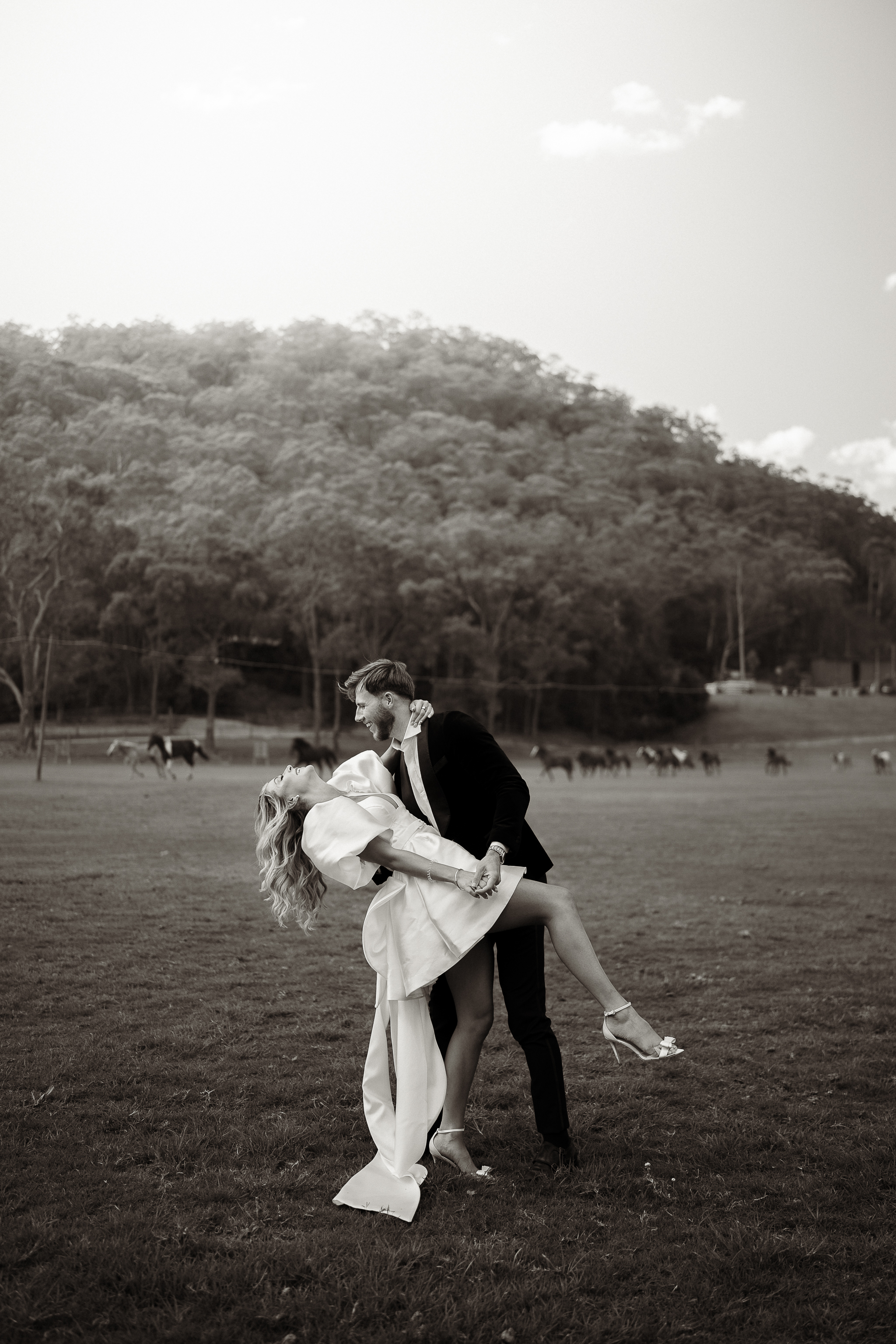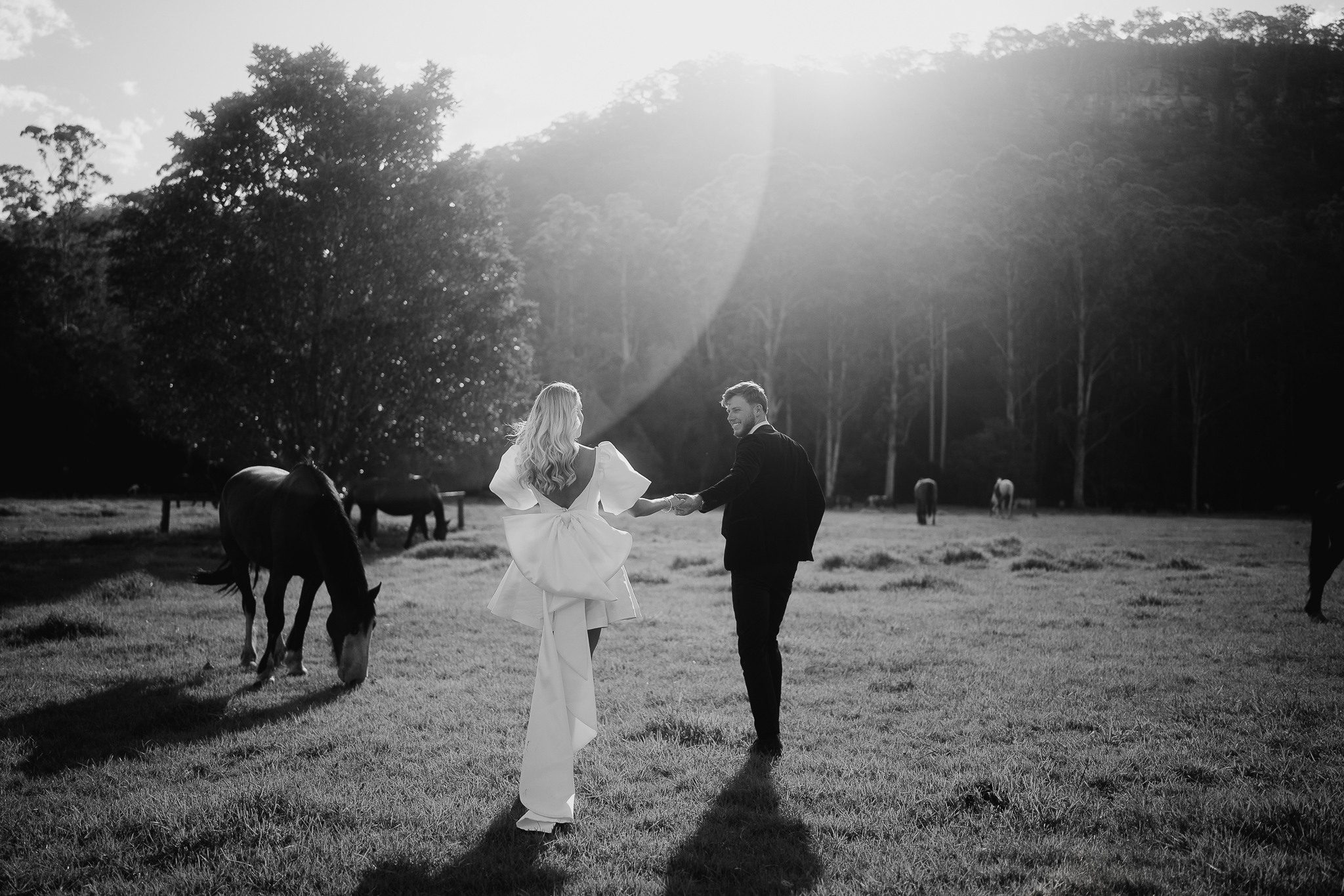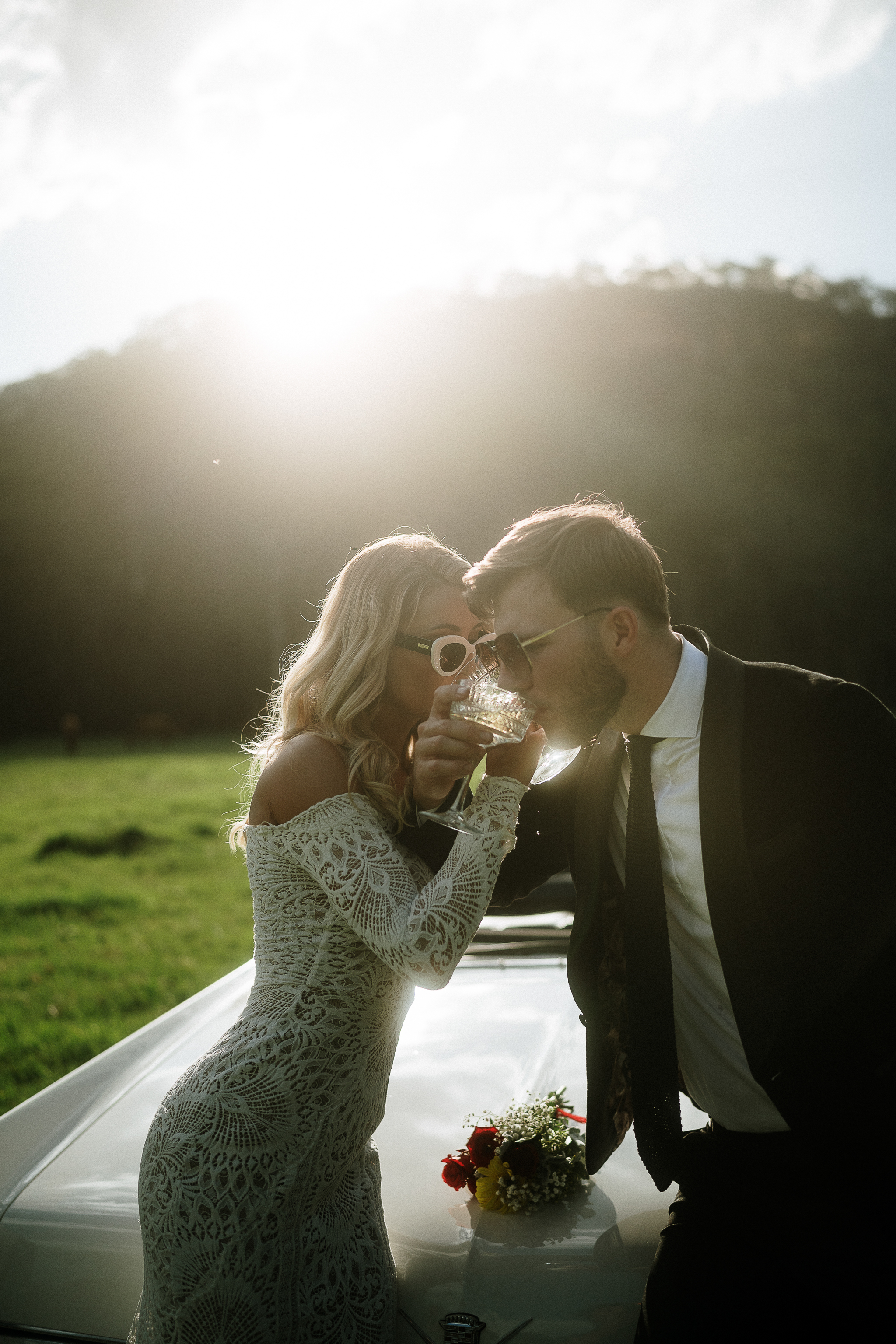 This beautiful photoshoot was done in the Glenworth valley weddings venue! If you are interested in shooting with horses and a beautiful landscape near Sydney, this is the place to be! All the things you see in this photoshoot, the car, dresses, suits, shoes, cake, champagne tower and the beautiful couple have all helped this shoot to achieve this beautiful look! I will post them all below as I highly recommend using these vendors! Car: @caddychicevents/ Bow dress: @kwhbridal/ Lace dresses: @grace_loves_lace/ Suits: @thdr_co/ Bridal shoes: @harloau/ Cake: @_sammiecakes