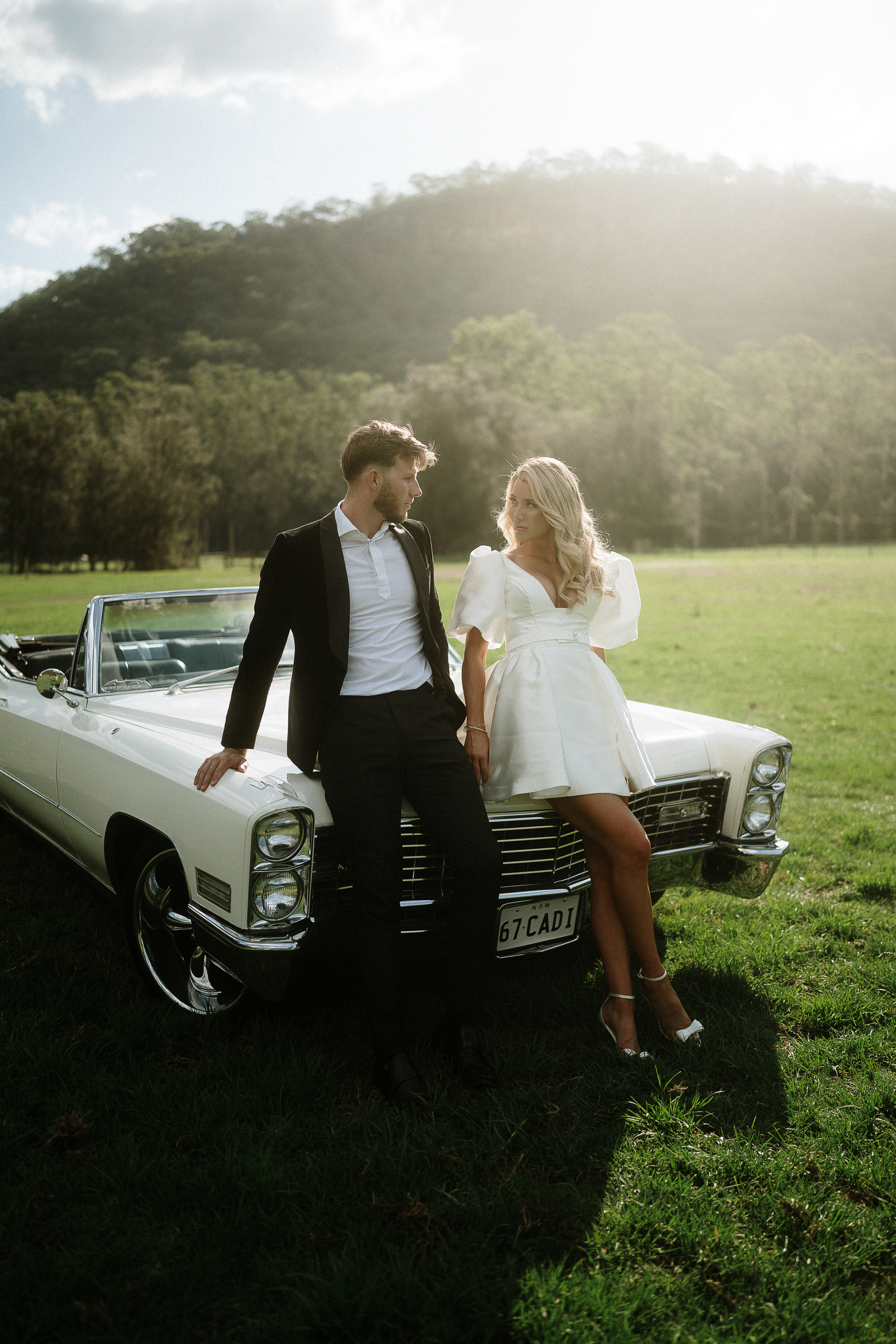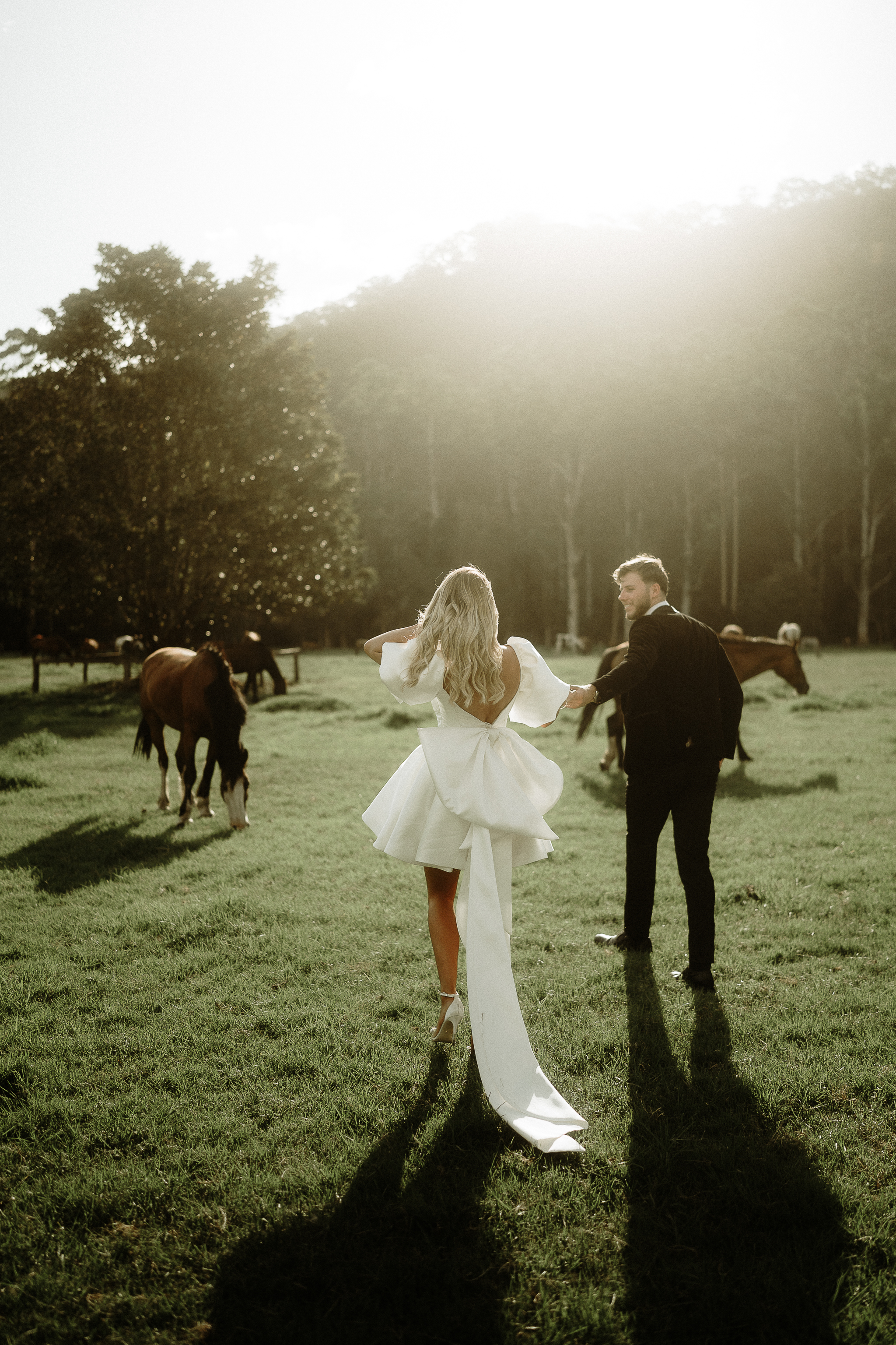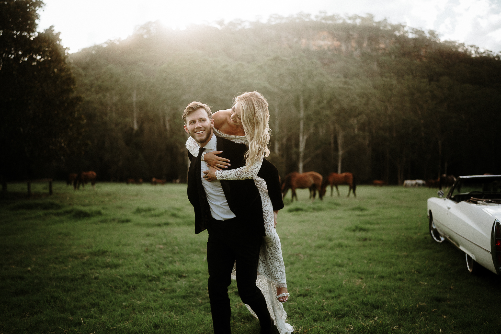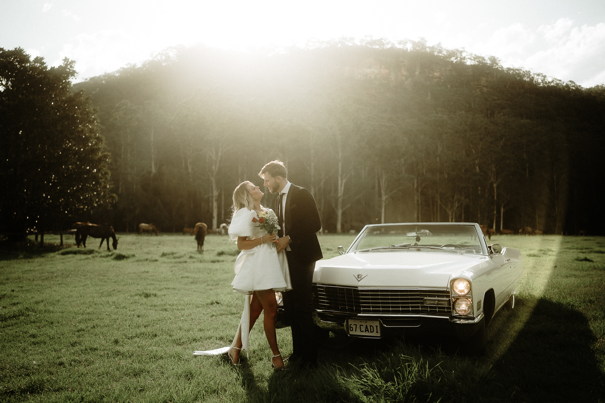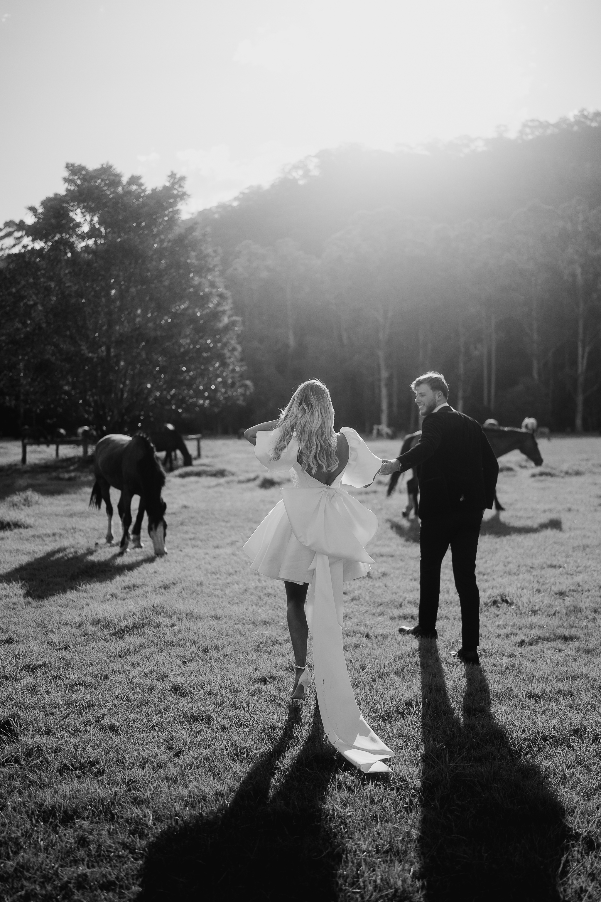 This beautiful photoshoot was done in the Glenworth valley weddings venue! If you are interested in shooting with horses and a beautiful landscape near Sydney, this is the place to be! All the things you see in this photoshoot, the car, dresses, suits, shoes, cake, champagne tower and the beautiful couple have all helped this shoot to achieve this beautiful look! I will post them all below as I highly recommend using these vendors! Car: @caddychicevents/ Bow dress: @kwhbridal/ Lace dresses: @grace_loves_lace/ Suits: @thdr_co/ Bridal shoes: @harloau/ Cake: @_sammiecakes