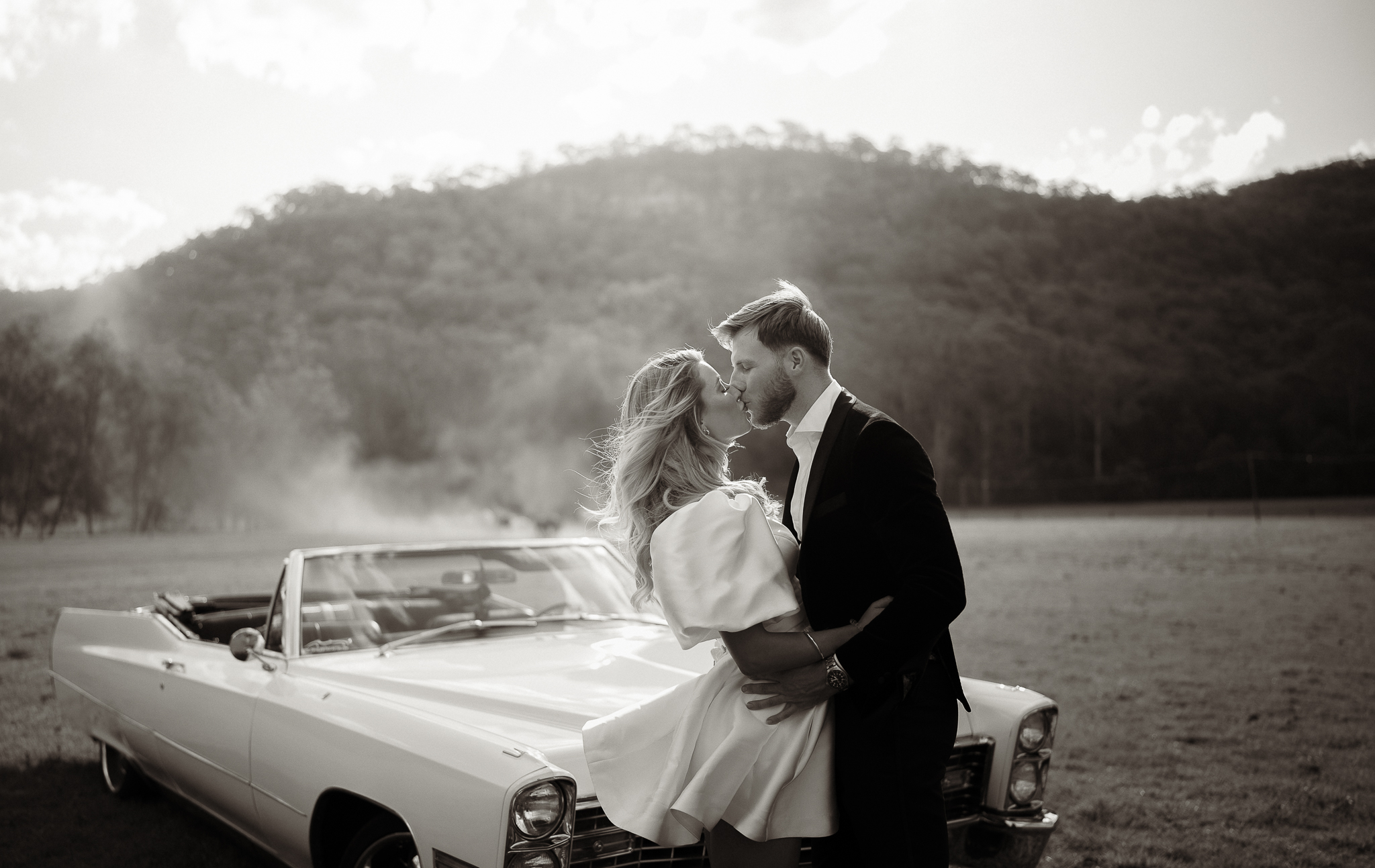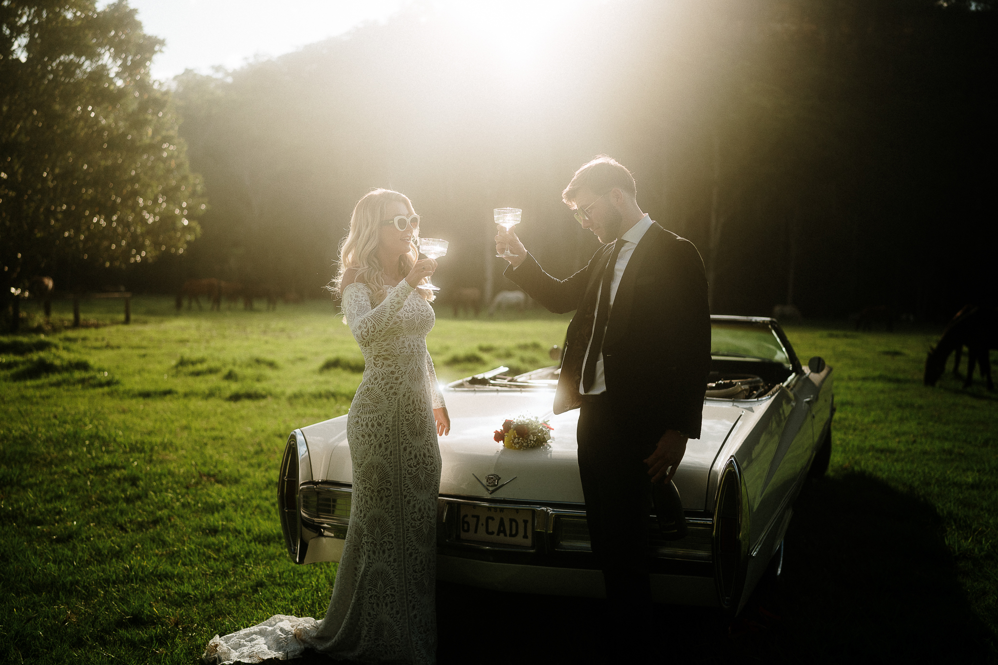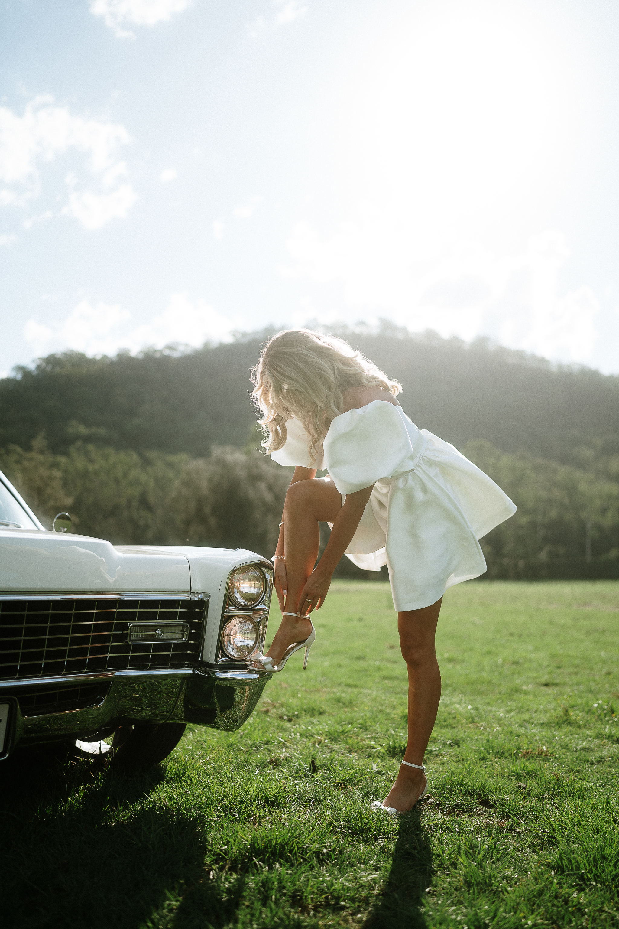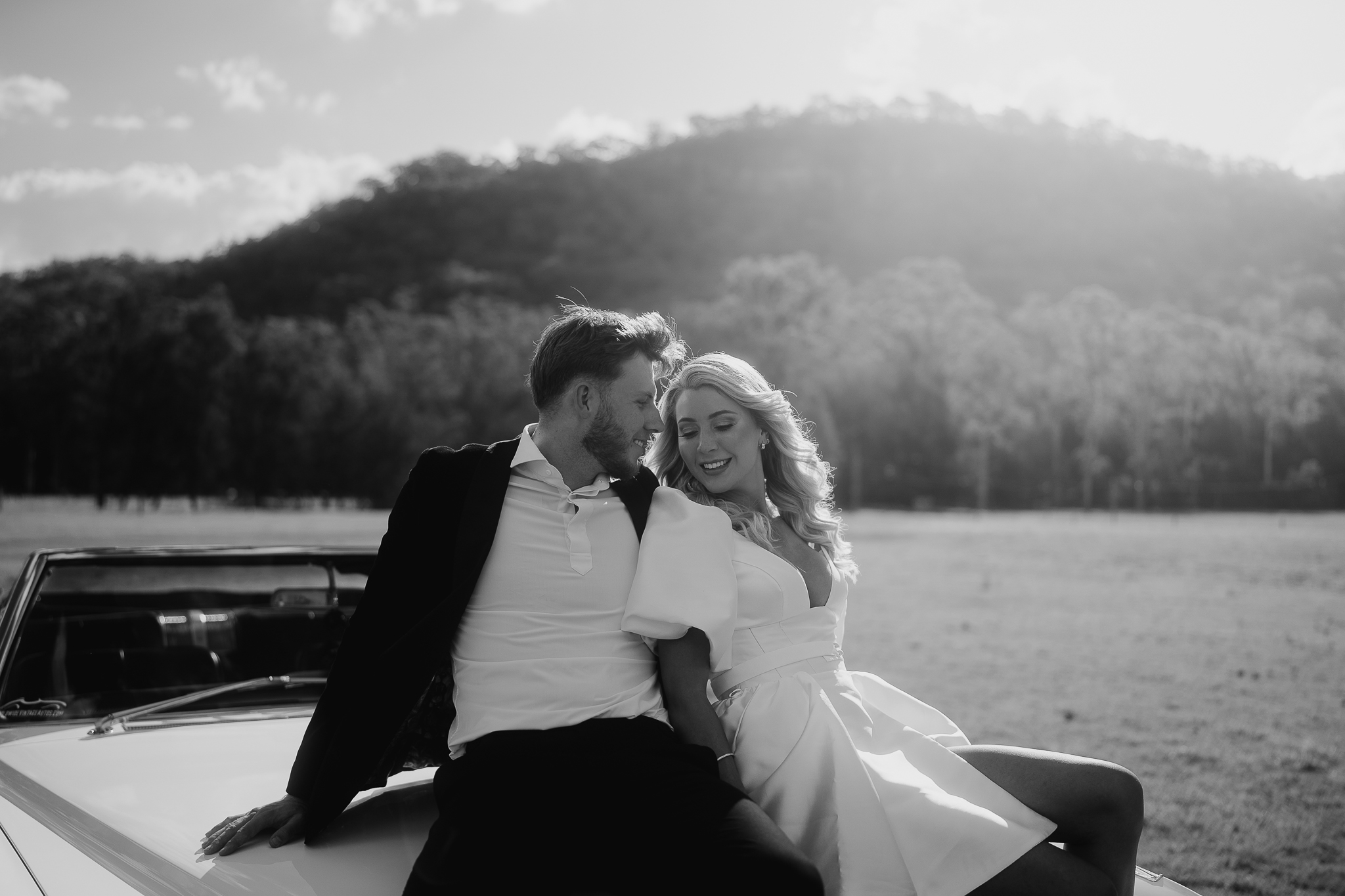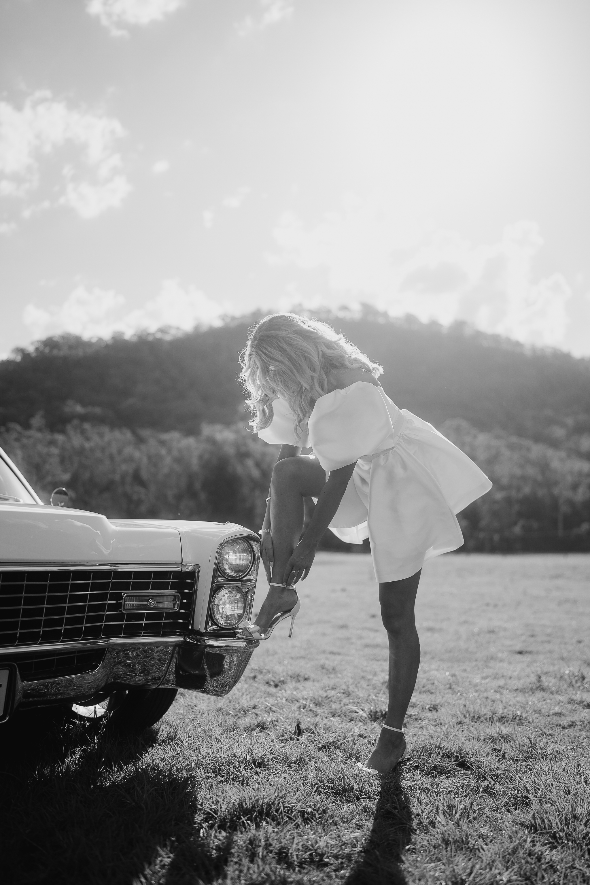 This beautiful photoshoot was done in the Glenworth valley weddings venue! If you are interested in shooting with horses and a beautiful landscape near Sydney, this is the place to be! All the things you see in this photoshoot, the car, dresses, suits, shoes, cake, champagne tower and the beautiful couple have all helped this shoot to achieve this beautiful look! I will post them all below as I highly recommend using these vendors! Car: @caddychicevents/ Bow dress: @kwhbridal/ Lace dresses: @grace_loves_lace/ Suits: @thdr_co/ Bridal shoes: @harloau/ Cake: @_sammiecakes