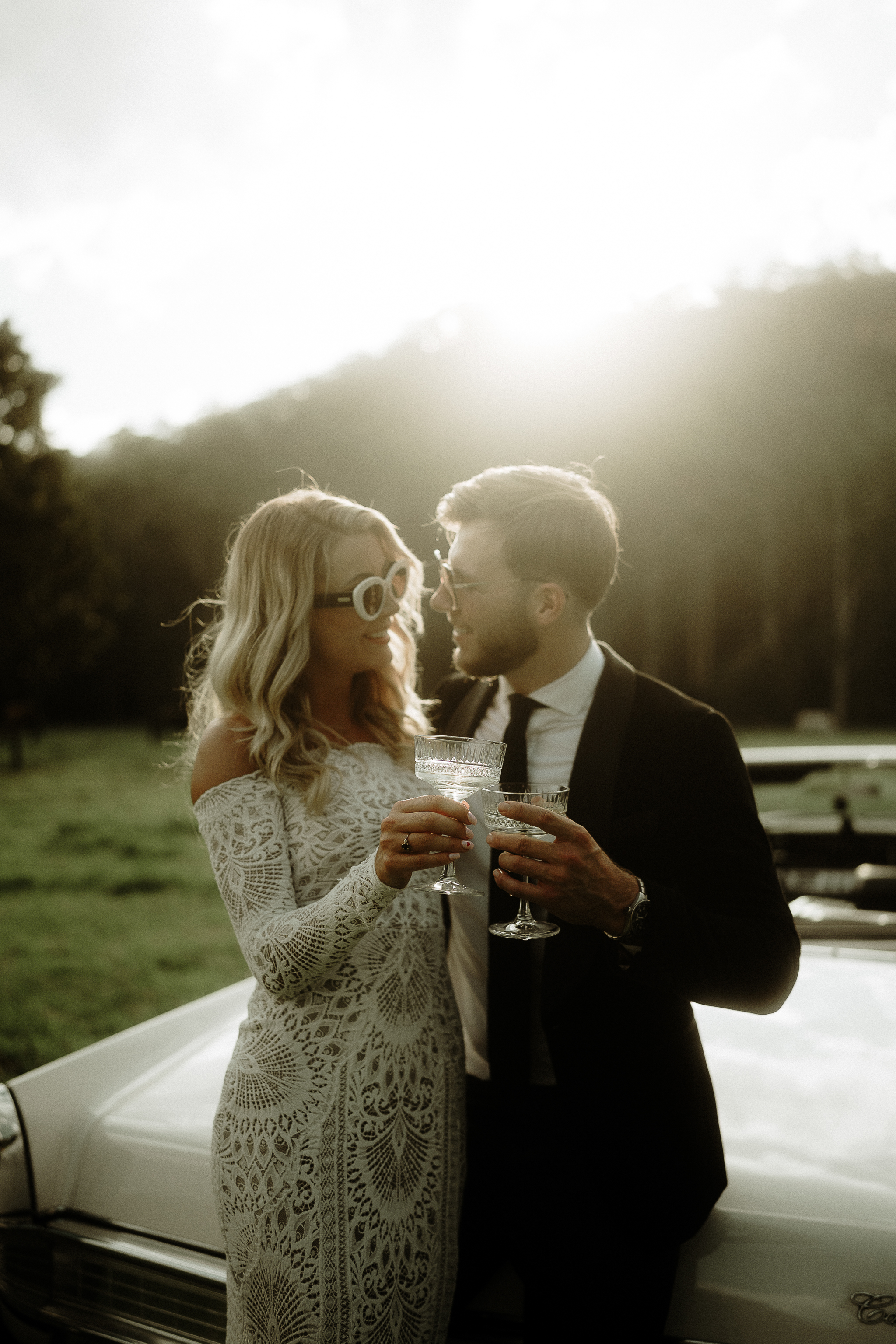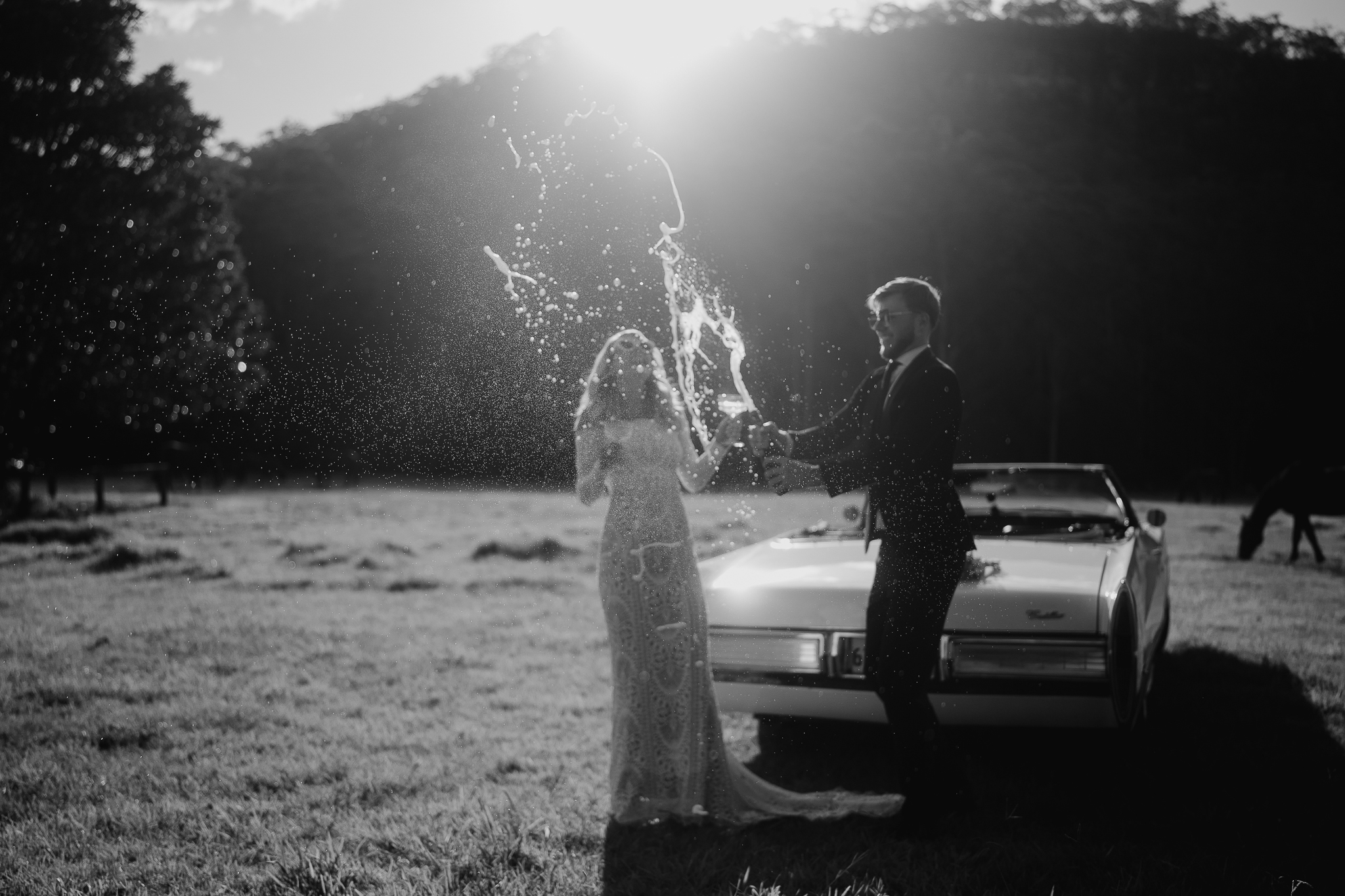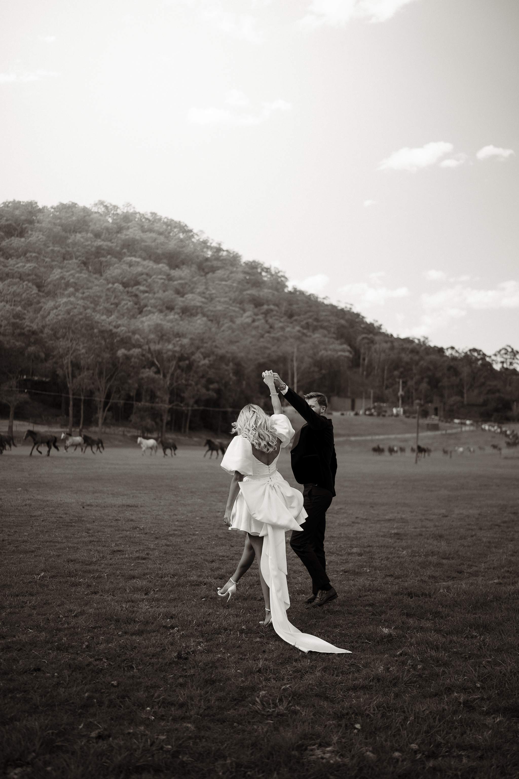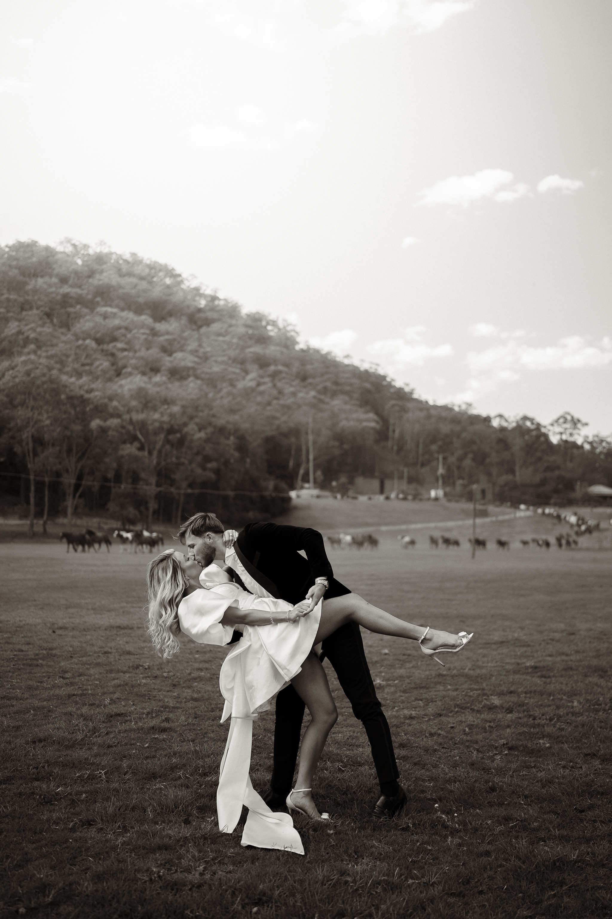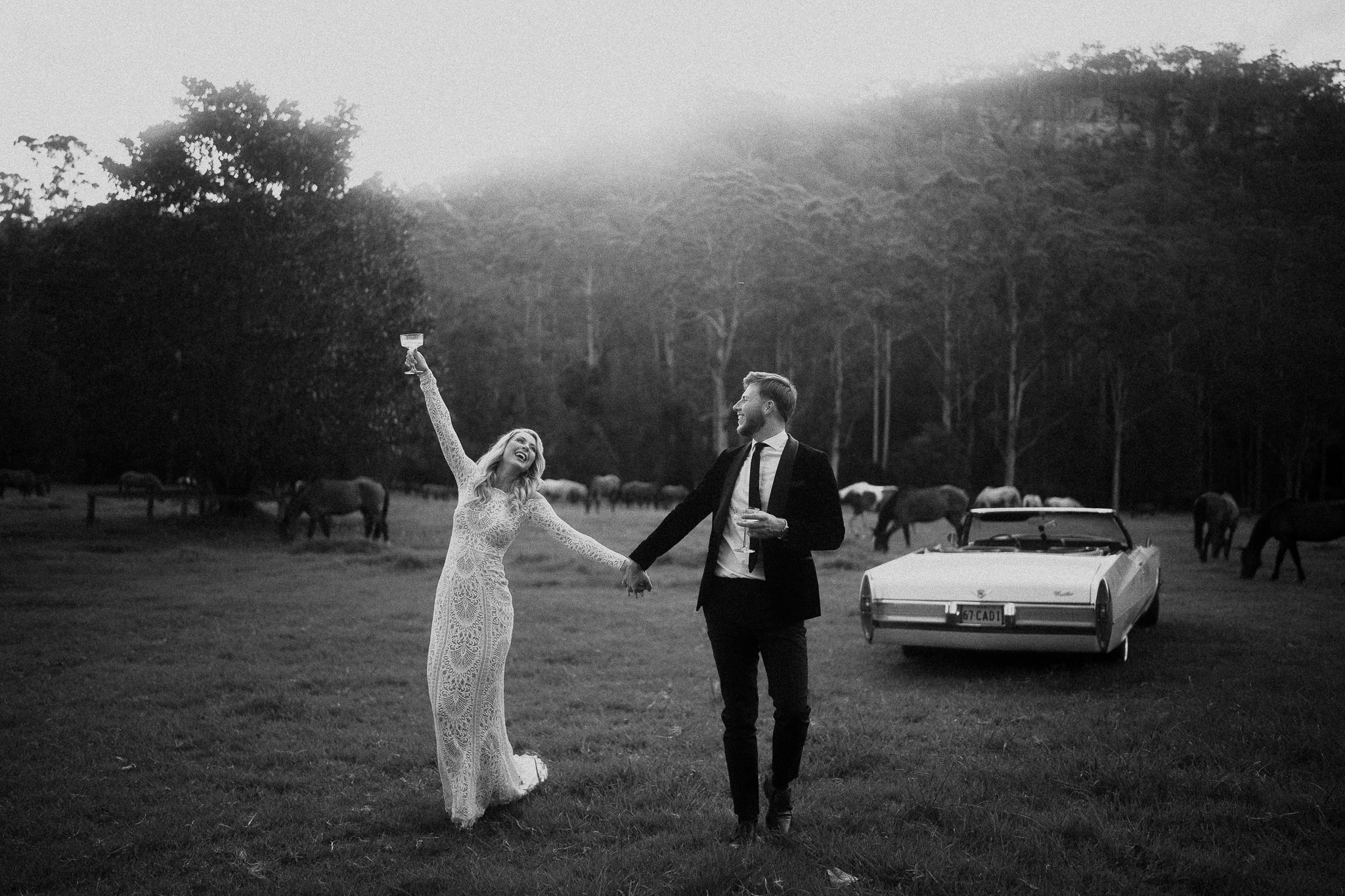 This beautiful photoshoot was done in the Glenworth valley weddings venue! If you are interested in shooting with horses and a beautiful landscape near Sydney, this is the place to be! All the things you see in this photoshoot, the car, dresses, suits, shoes, cake, champagne tower and the beautiful couple have all helped this shoot to achieve this beautiful look! I will post them all below as I highly recommend using these vendors! Car: @caddychicevents/ Bow dress: @kwhbridal/ Lace dresses: @grace_loves_lace/ Suits: @thdr_co/ Bridal shoes: @harloau/ Cake: @_sammiecakes