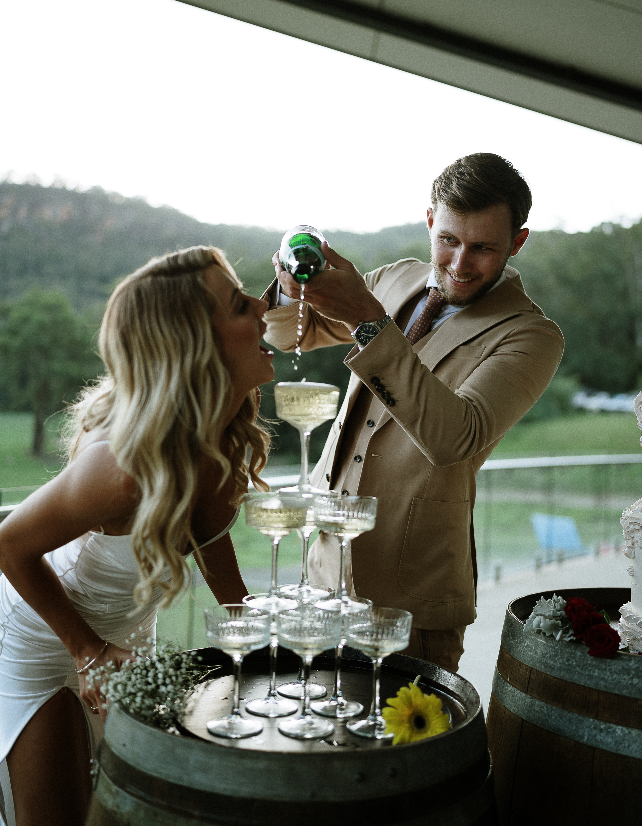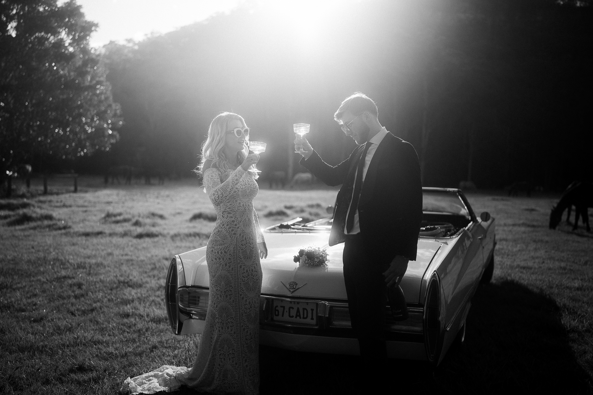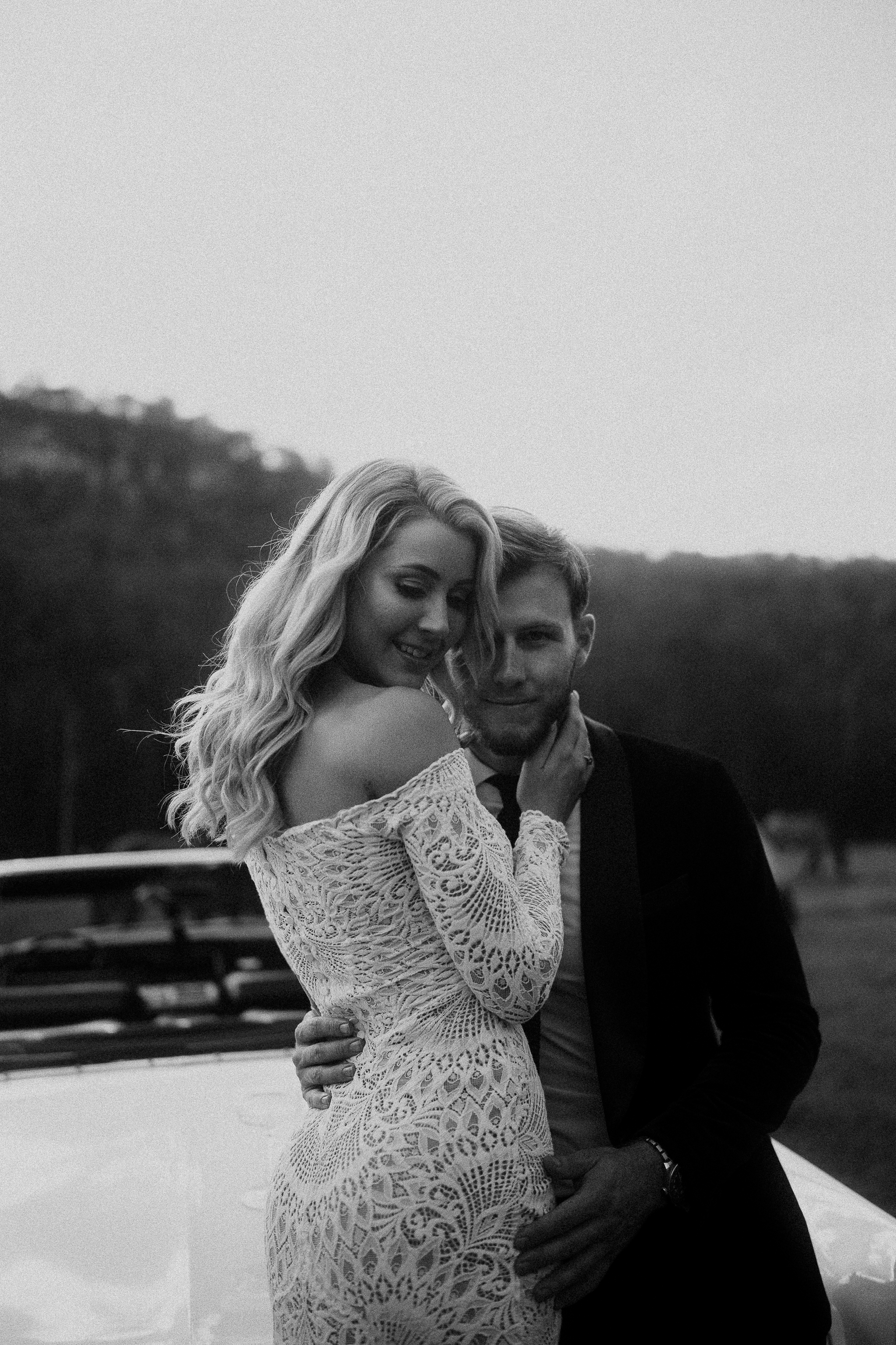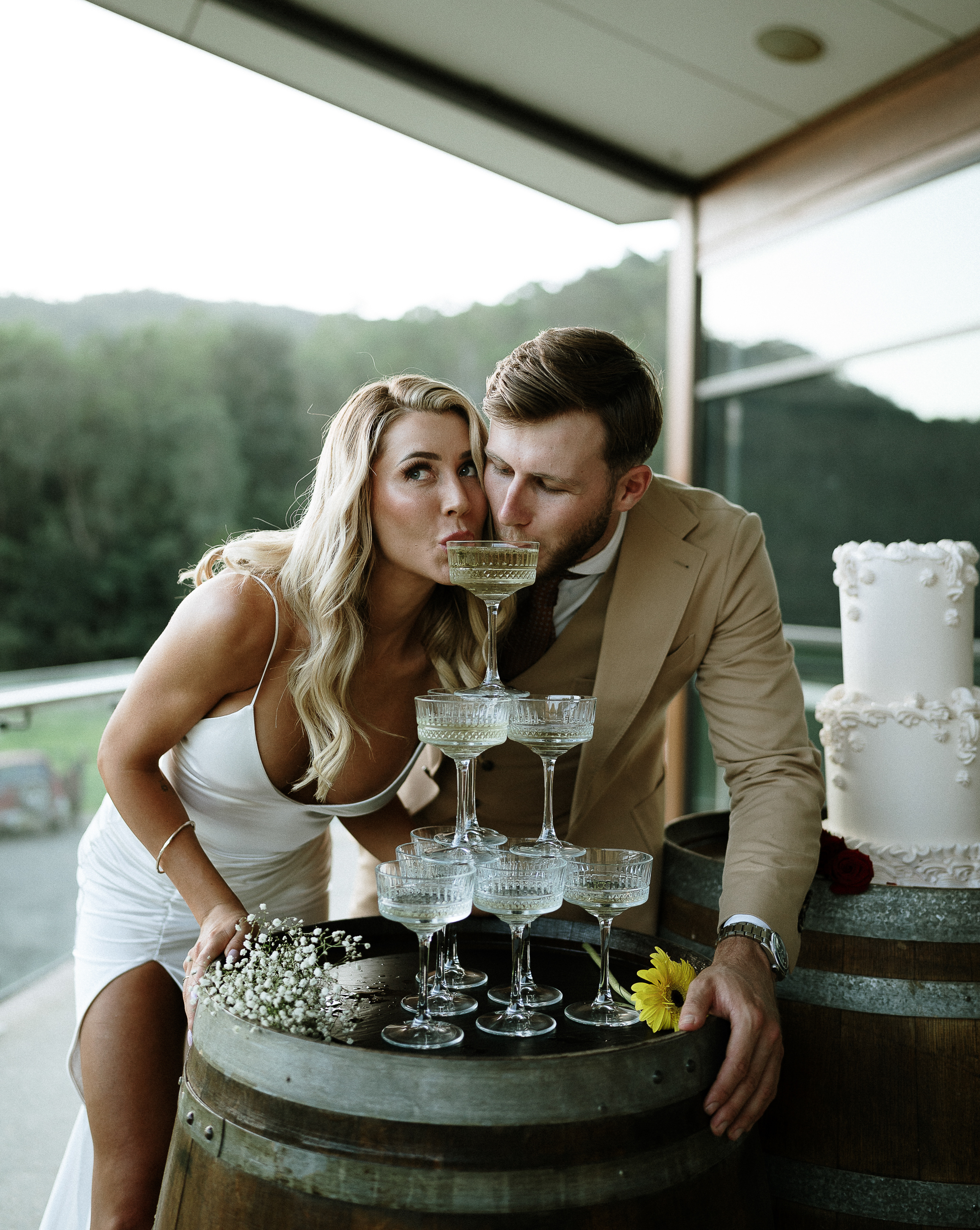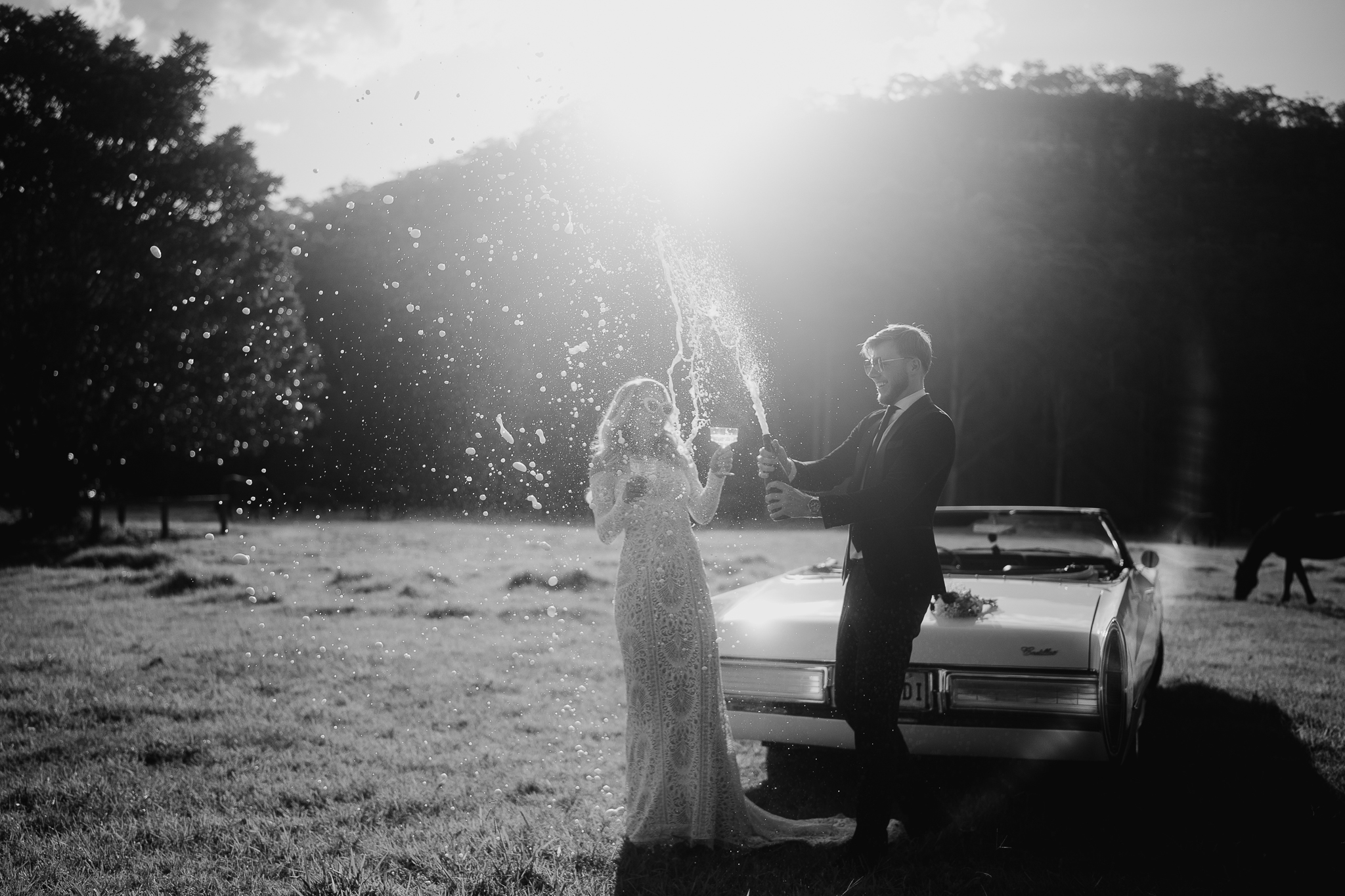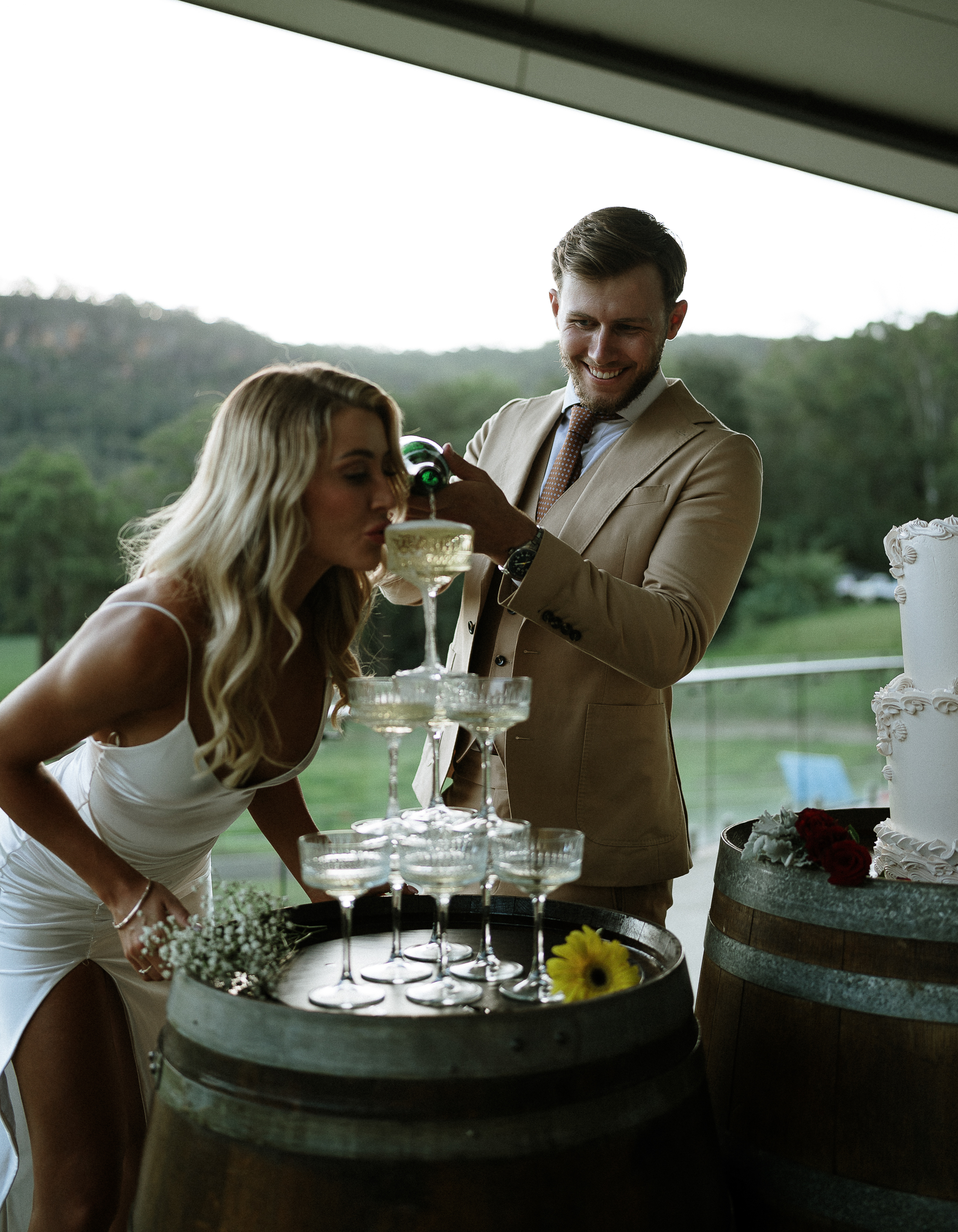 This beautiful photoshoot was done in the Glenworth valley weddings venue! If you are interested in shooting with horses and a beautiful landscape near Sydney, this is the place to be! All the things you see in this photoshoot, the car, dresses, suits, shoes, cake, champagne tower and the beautiful couple have all helped this shoot to achieve this beautiful look! I will post them all below as I highly recommend using these vendors! Car: @caddychicevents/ Bow dress: @kwhbridal/ Lace dresses: @grace_loves_lace/ Suits: @thdr_co/ Bridal shoes: @harloau/ Cake: @_sammiecakes