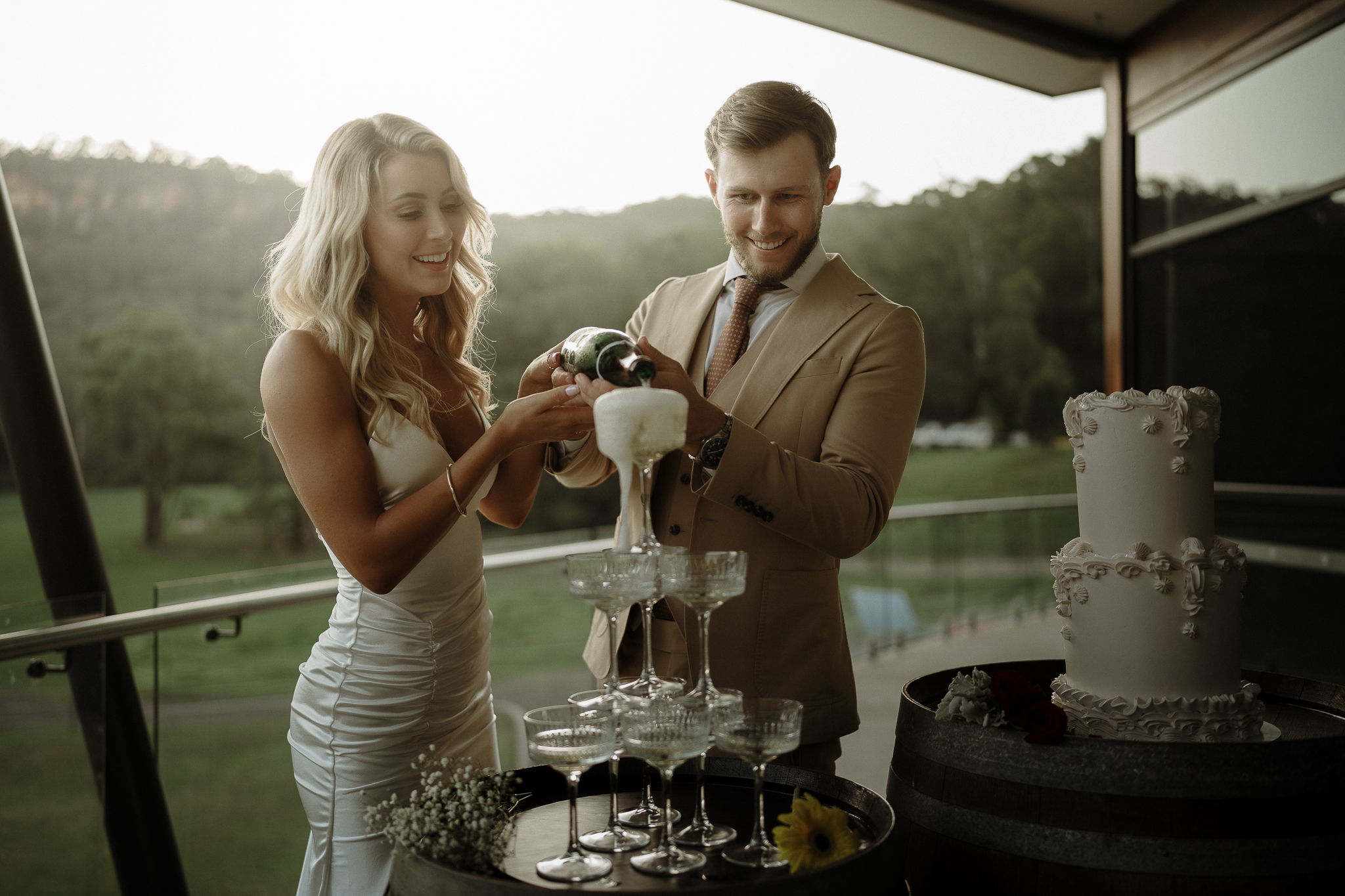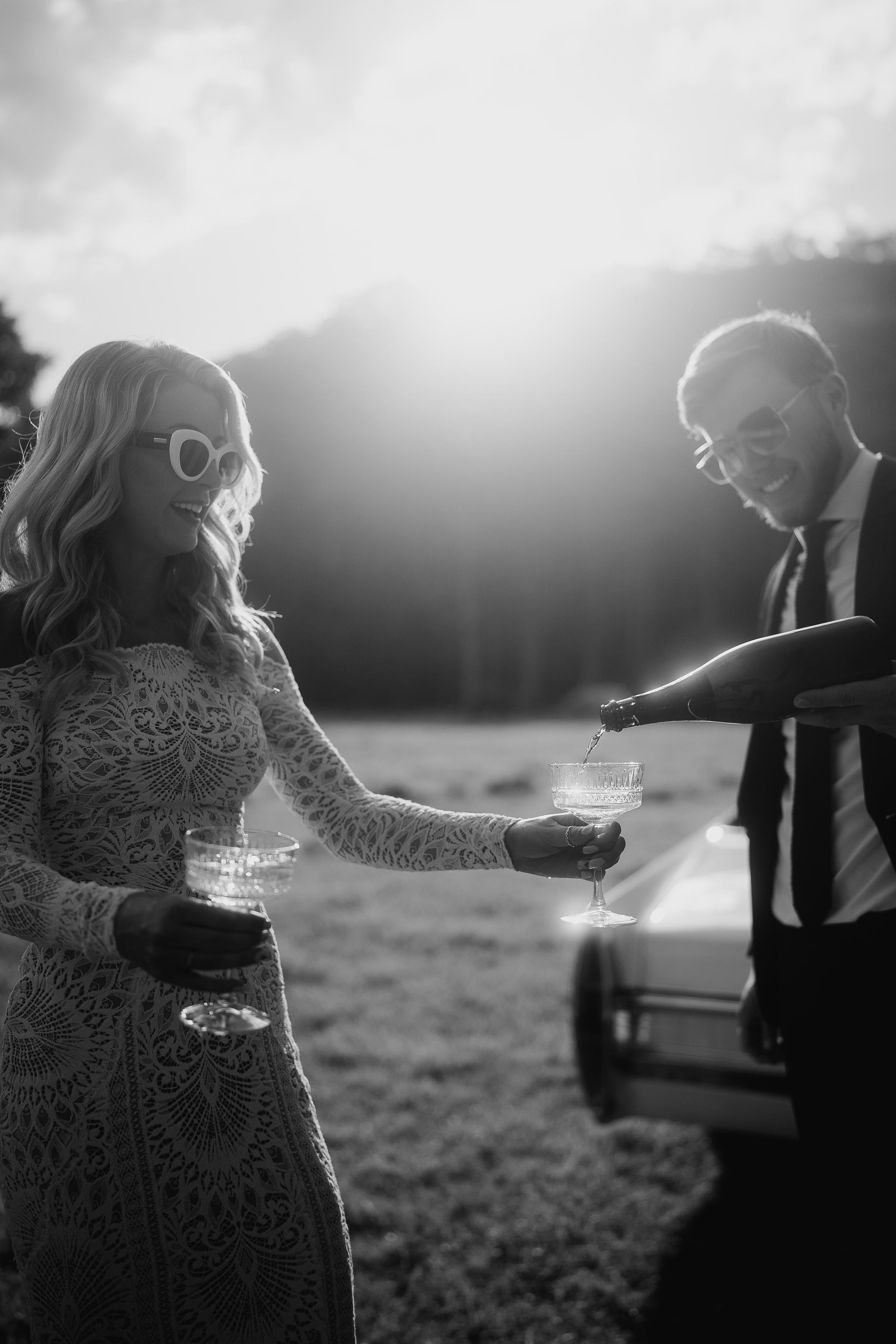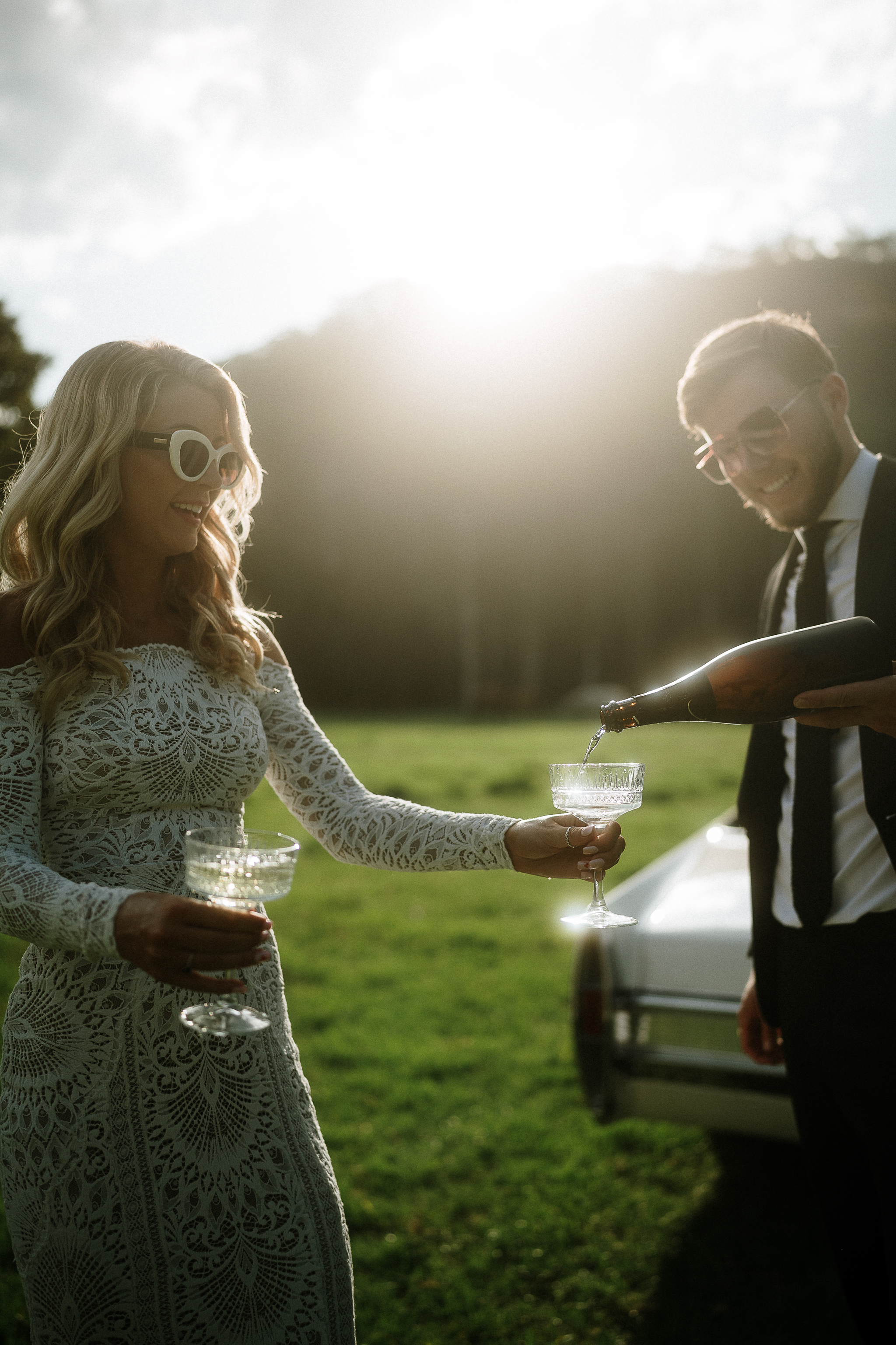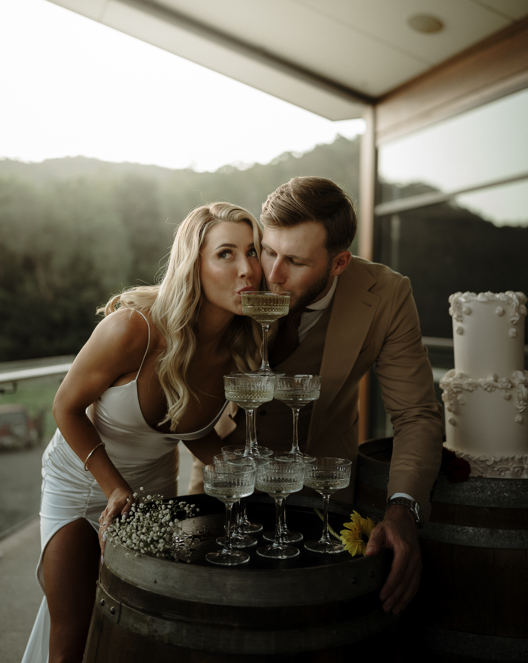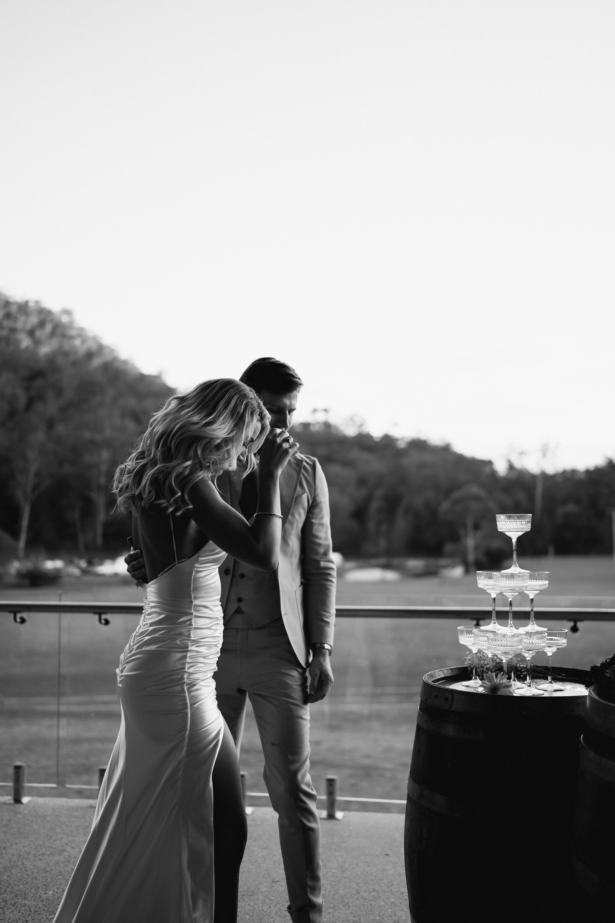 This beautiful photoshoot was done in the Glenworth valley weddings venue! If you are interested in shooting with horses and a beautiful landscape near Sydney, this is the place to be! All the things you see in this photoshoot, the car, dresses, suits, shoes, cake, champagne tower and the beautiful couple have all helped this shoot to achieve this beautiful look! I will post them all below as I highly recommend using these vendors! Car: @caddychicevents/ Bow dress: @kwhbridal/ Lace dresses: @grace_loves_lace/ Suits: @thdr_co/ Bridal shoes: @harloau/ Cake: @_sammiecakes