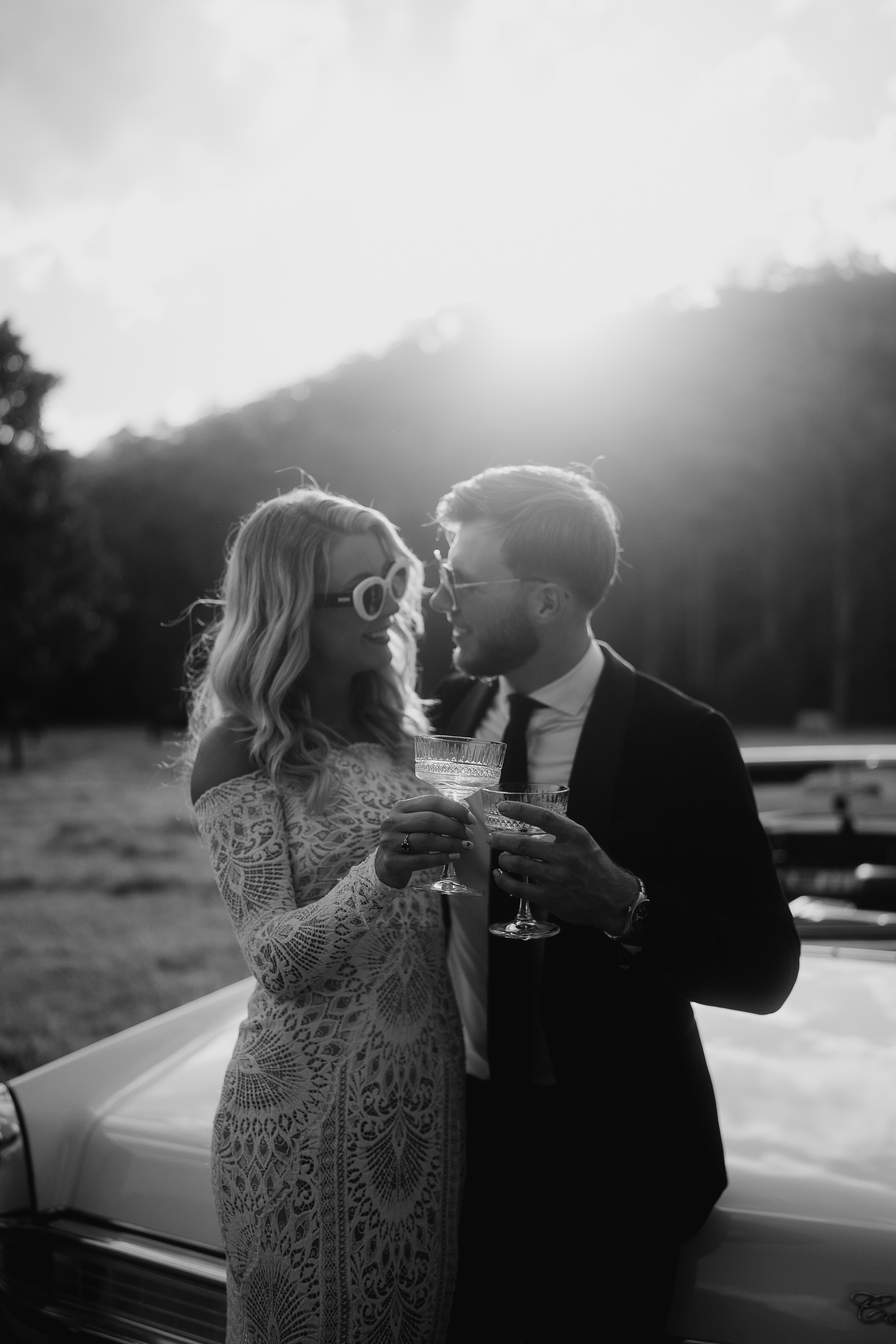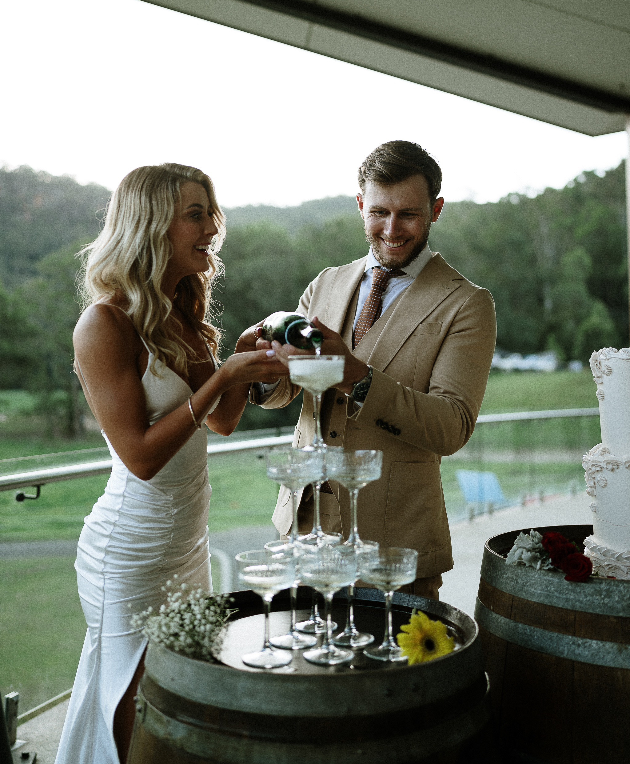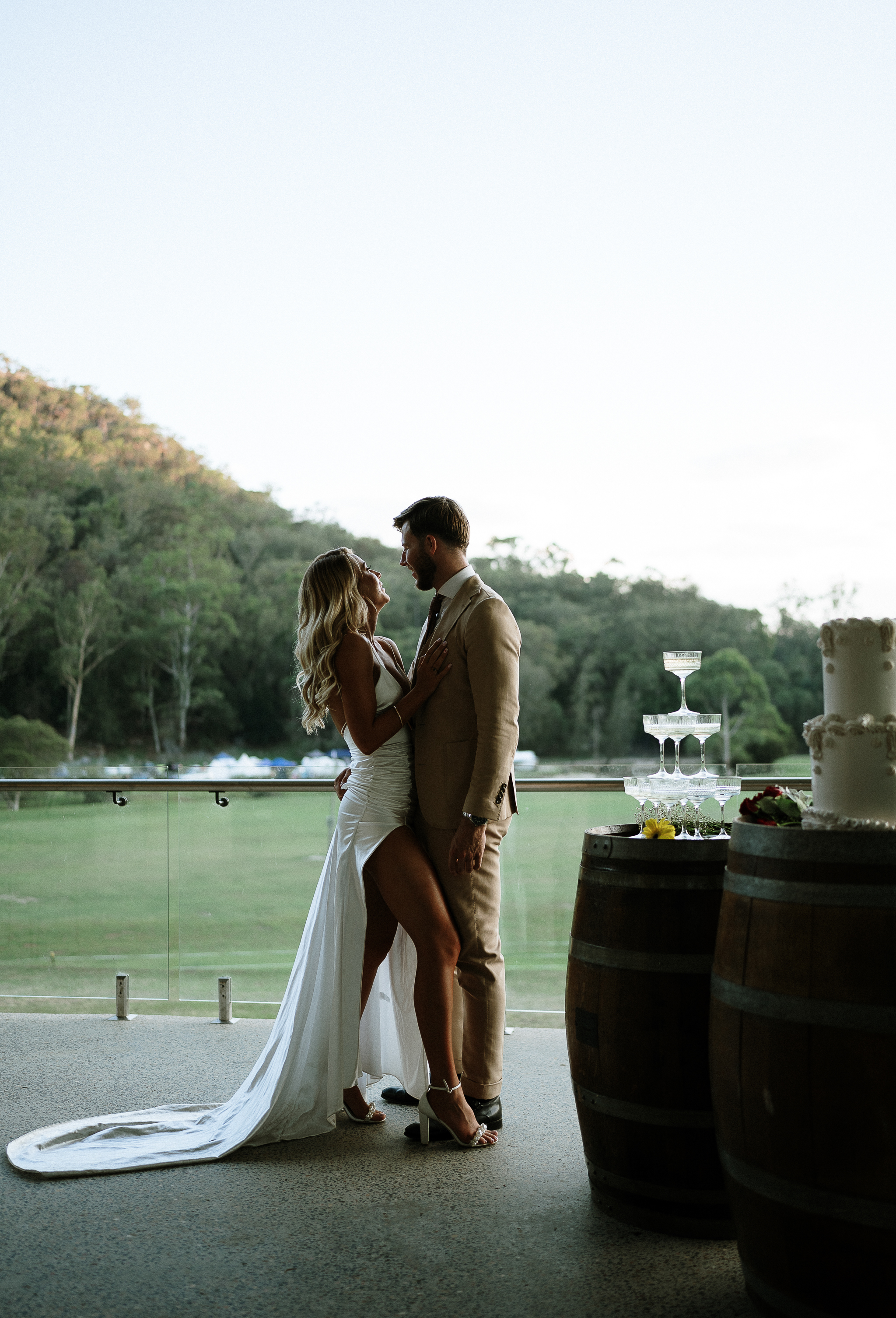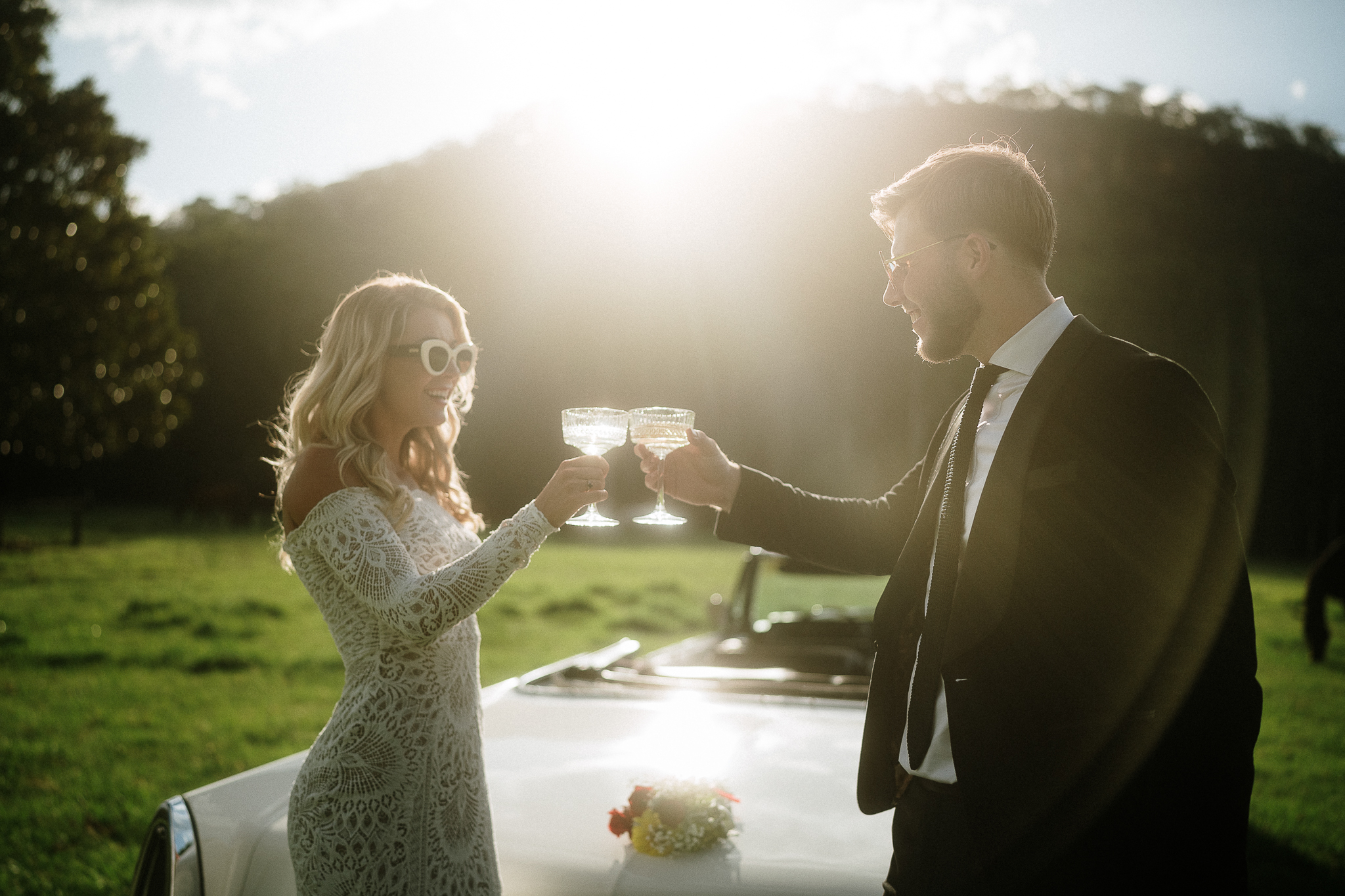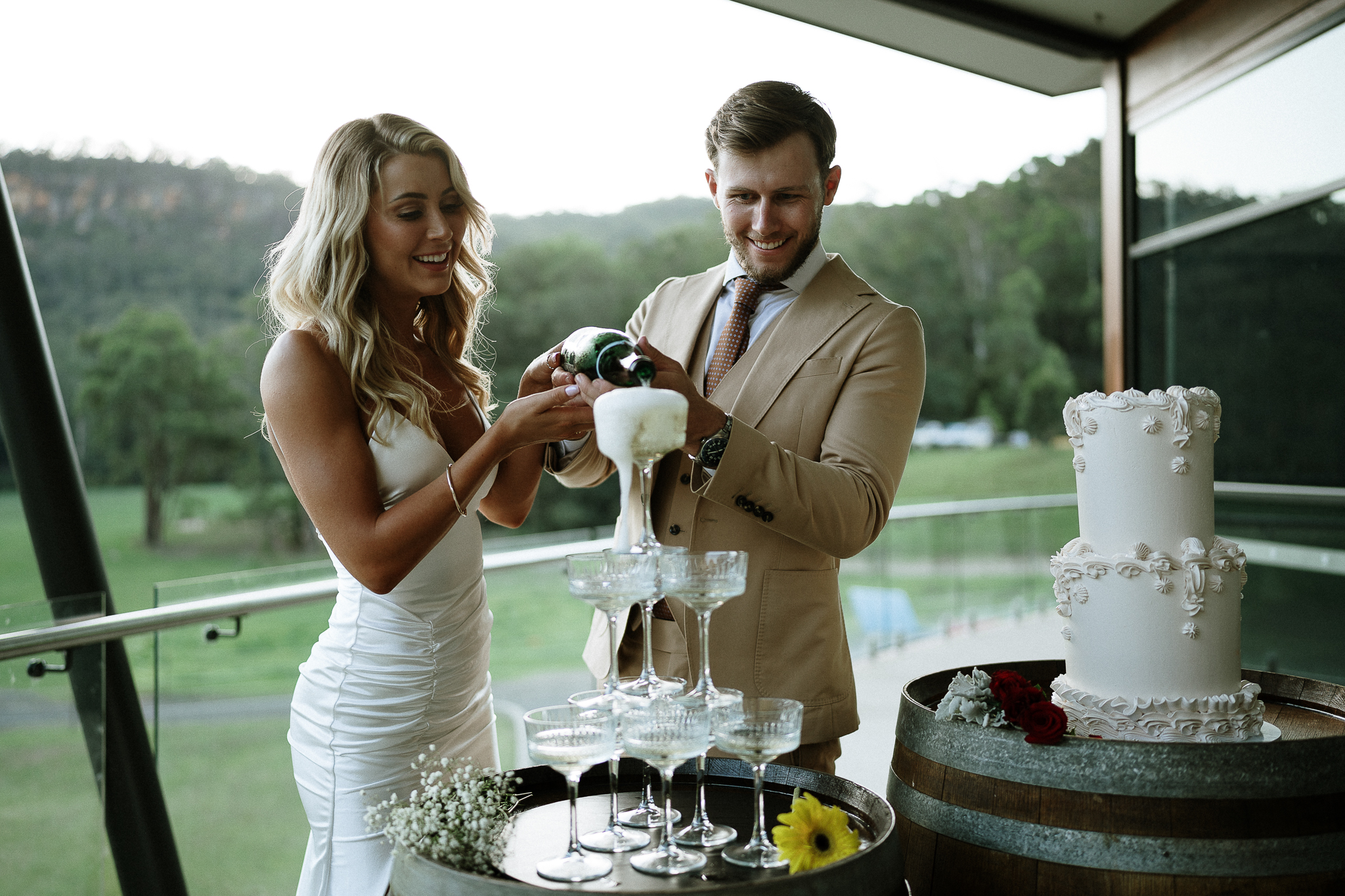 This beautiful photoshoot was done in the Glenworth valley weddings venue! If you are interested in shooting with horses and a beautiful landscape near Sydney, this is the place to be! All the things you see in this photoshoot, the car, dresses, suits, shoes, cake, champagne tower and the beautiful couple have all helped this shoot to achieve this beautiful look! I will post them all below as I highly recommend using these vendors! Car: @caddychicevents/ Bow dress: @kwhbridal/ Lace dresses: @grace_loves_lace/ Suits: @thdr_co/ Bridal shoes: @harloau/ Cake: @_sammiecakes