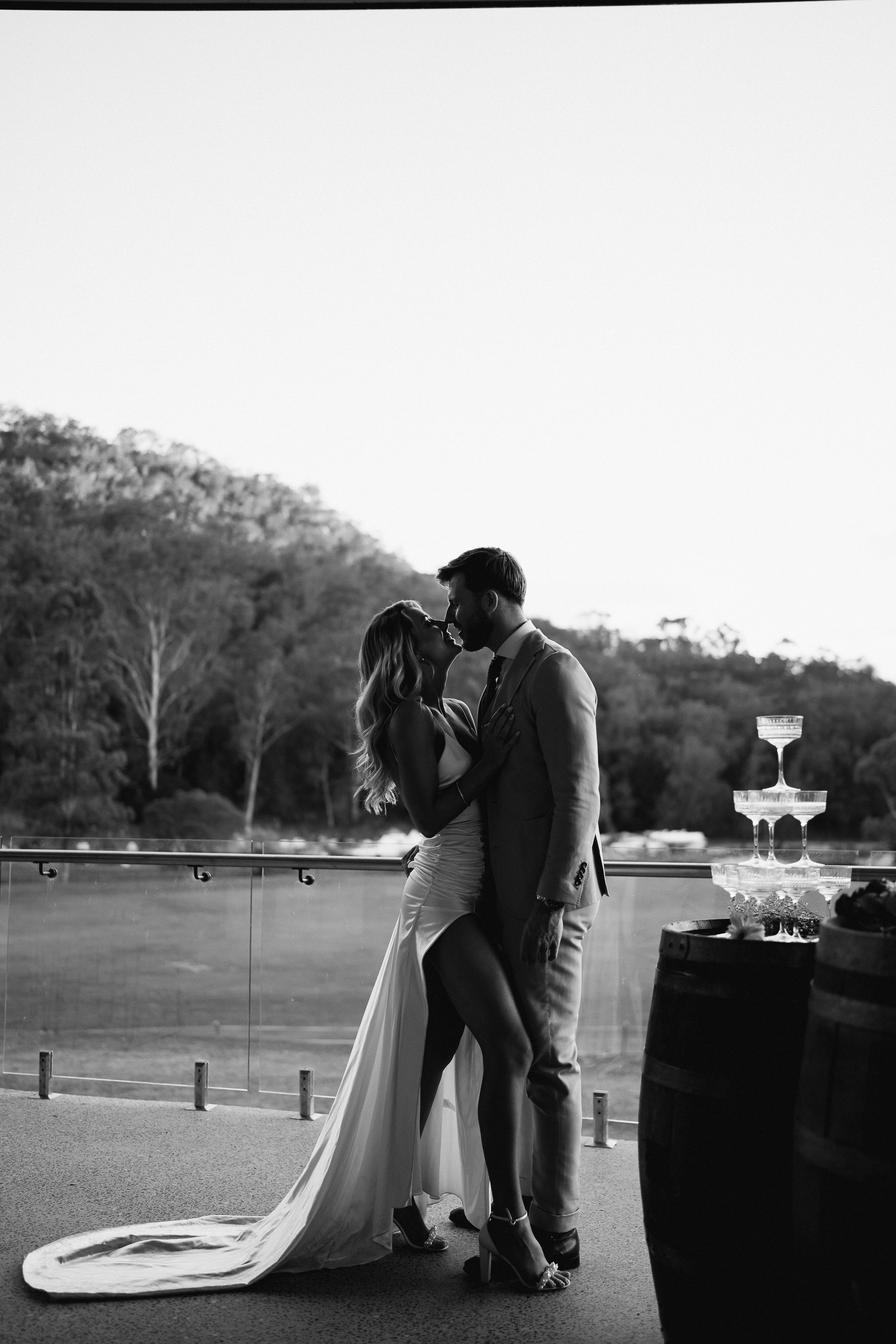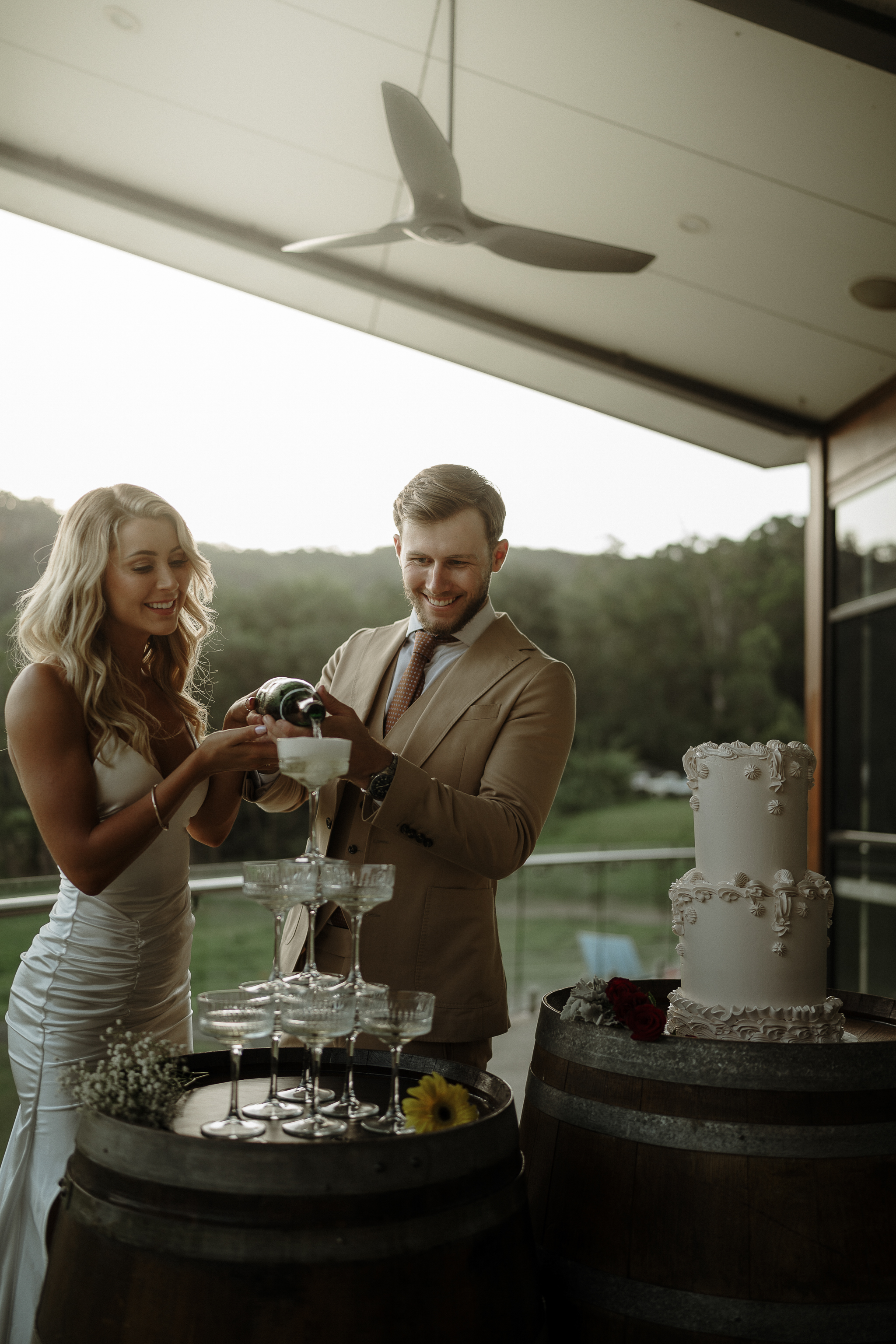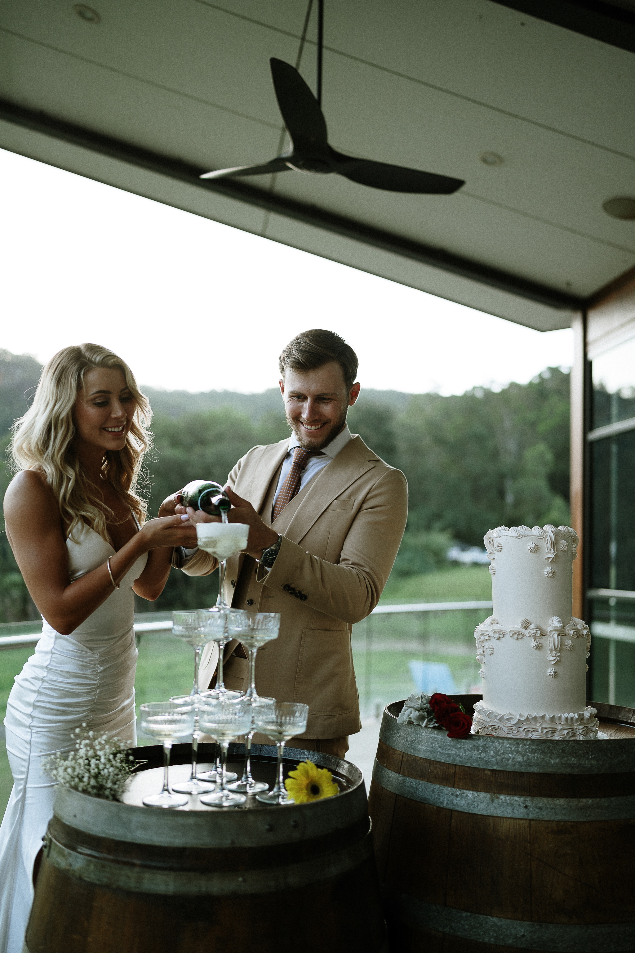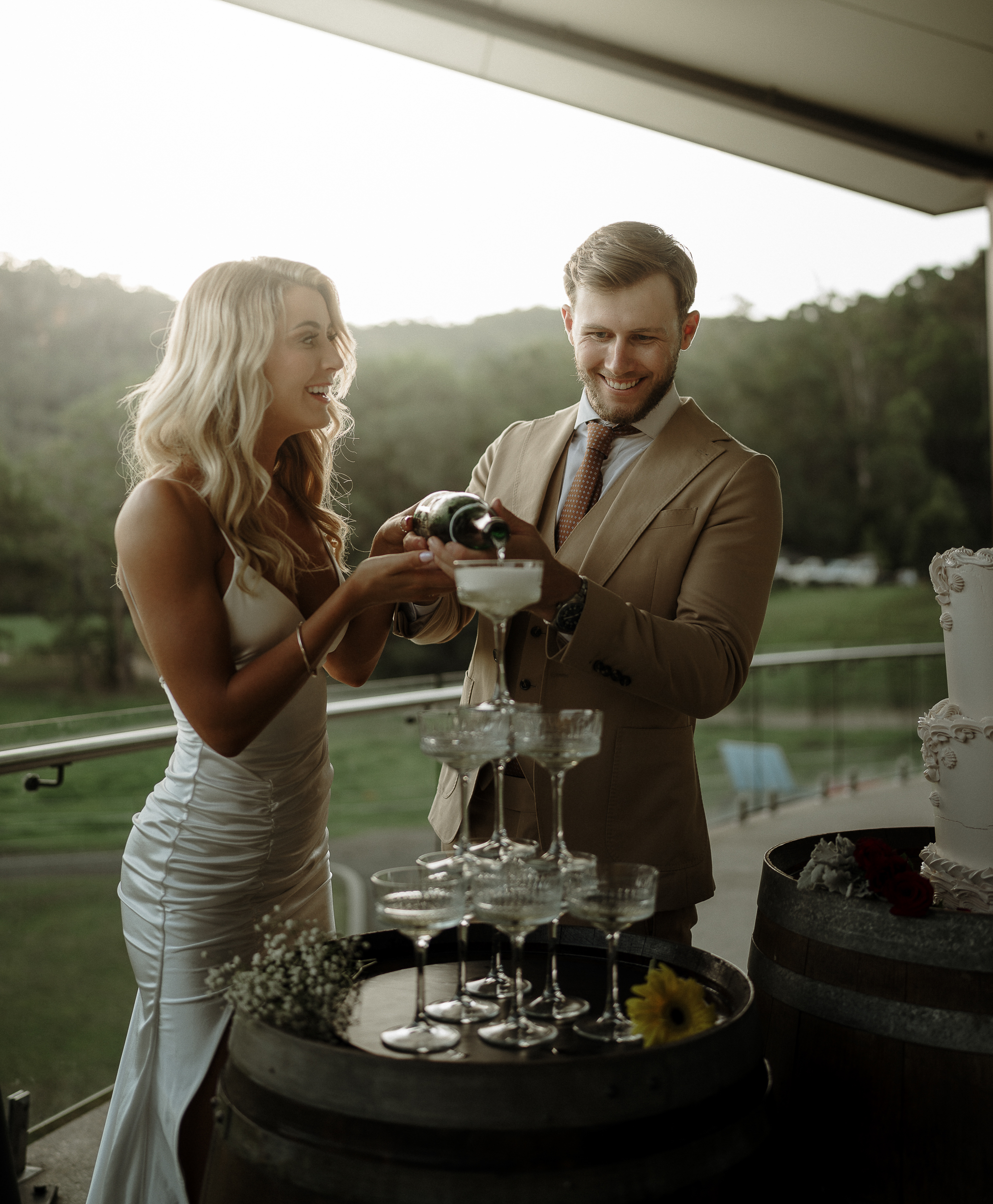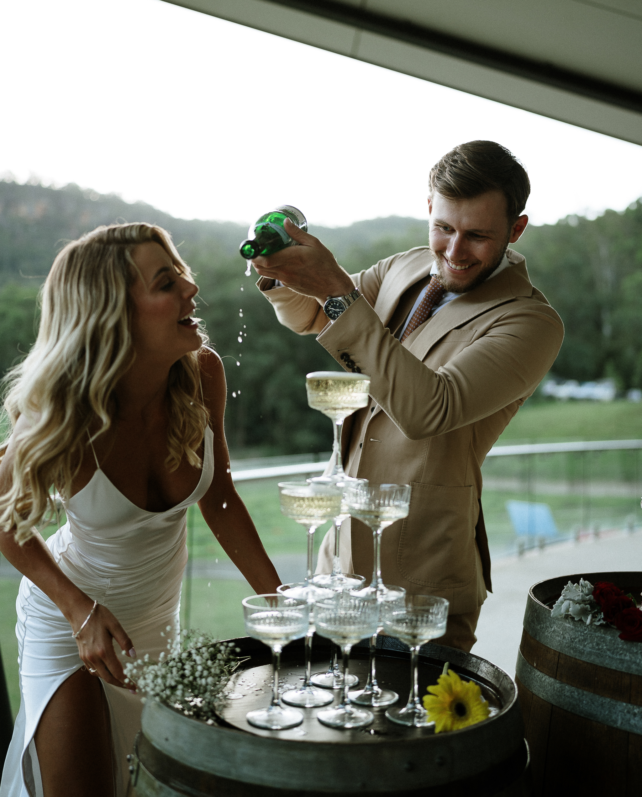 This beautiful photoshoot was done in the Glenworth valley weddings venue! If you are interested in shooting with horses and a beautiful landscape near Sydney, this is the place to be! All the things you see in this photoshoot, the car, dresses, suits, shoes, cake, champagne tower and the beautiful couple have all helped this shoot to achieve this beautiful look! I will post them all below as I highly recommend using these vendors! Car: @caddychicevents/ Bow dress: @kwhbridal/ Lace dresses: @grace_loves_lace/ Suits: @thdr_co/ Bridal shoes: @harloau/ Cake: @_sammiecakes